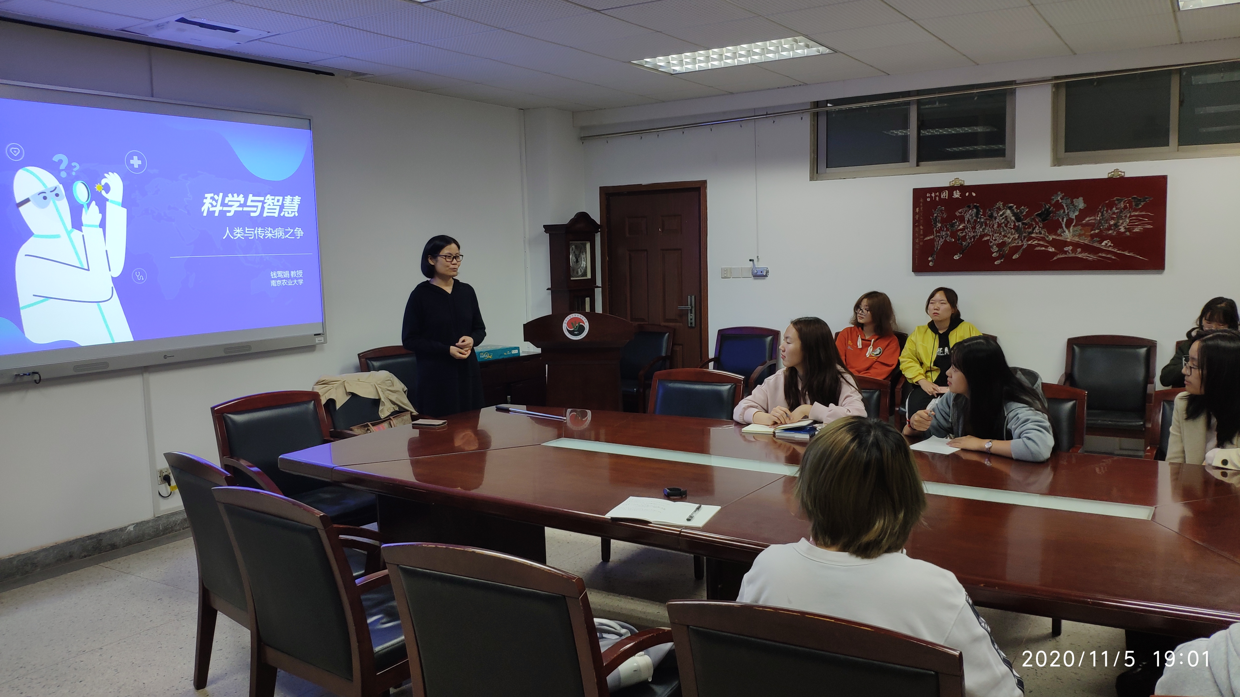11月5日,钱莺娟老师在逸夫楼3036给新生们带来了一场非常精彩的新生研讨课。钱老师从回顾自己的求学经历开始,从自己求学过程中也经历了非典、这次大家记忆都十分深刻的新冠引入这次研讨课主题——科学与传染病。讲诉了为何往年讲述国外兽医情况到今年新主题的更换。