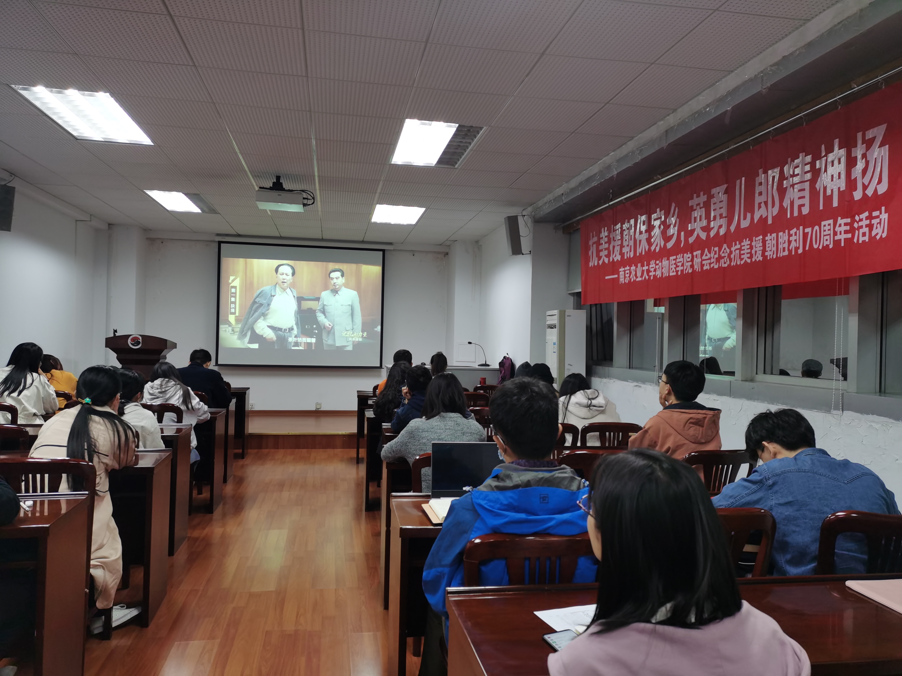 2020年是中国人民志愿军抗美援朝出国作战70周年,为深入学习贯彻习近平总书记在纪念中国人民志愿军抗美援朝出国作战70周年大会上的重要讲话精神、大力弘扬伟大的抗美援朝精神、在研究生群体内凝聚正能量,2020年11月10日晚,WilliamHill中文官方网站于逸夫楼3044成功举办“抗美援朝保家乡,英勇儿郎精神扬” 纪念抗美援朝胜利70周年主题活动。WilliamHill官网研究生积极参加本次观影活动。