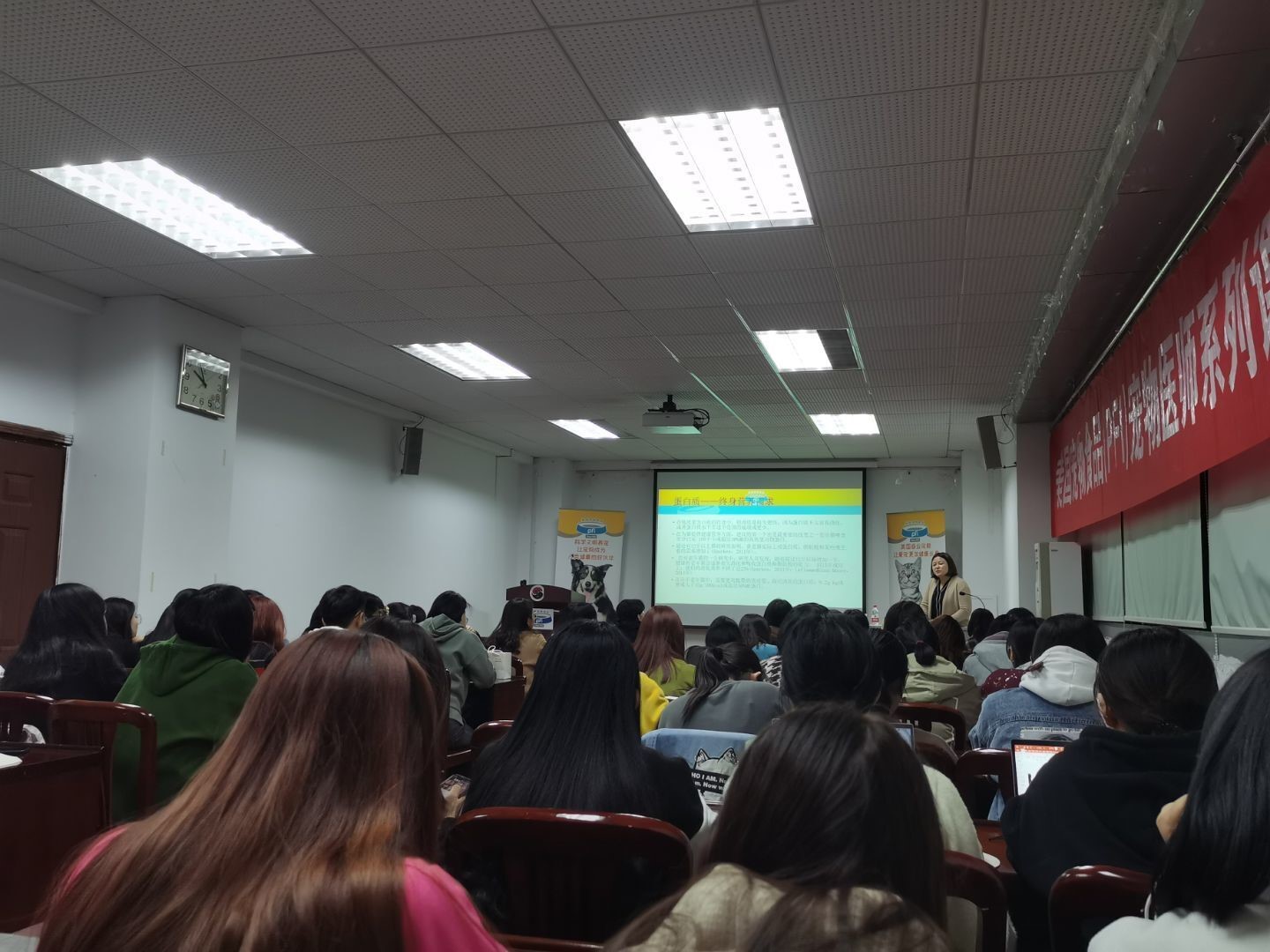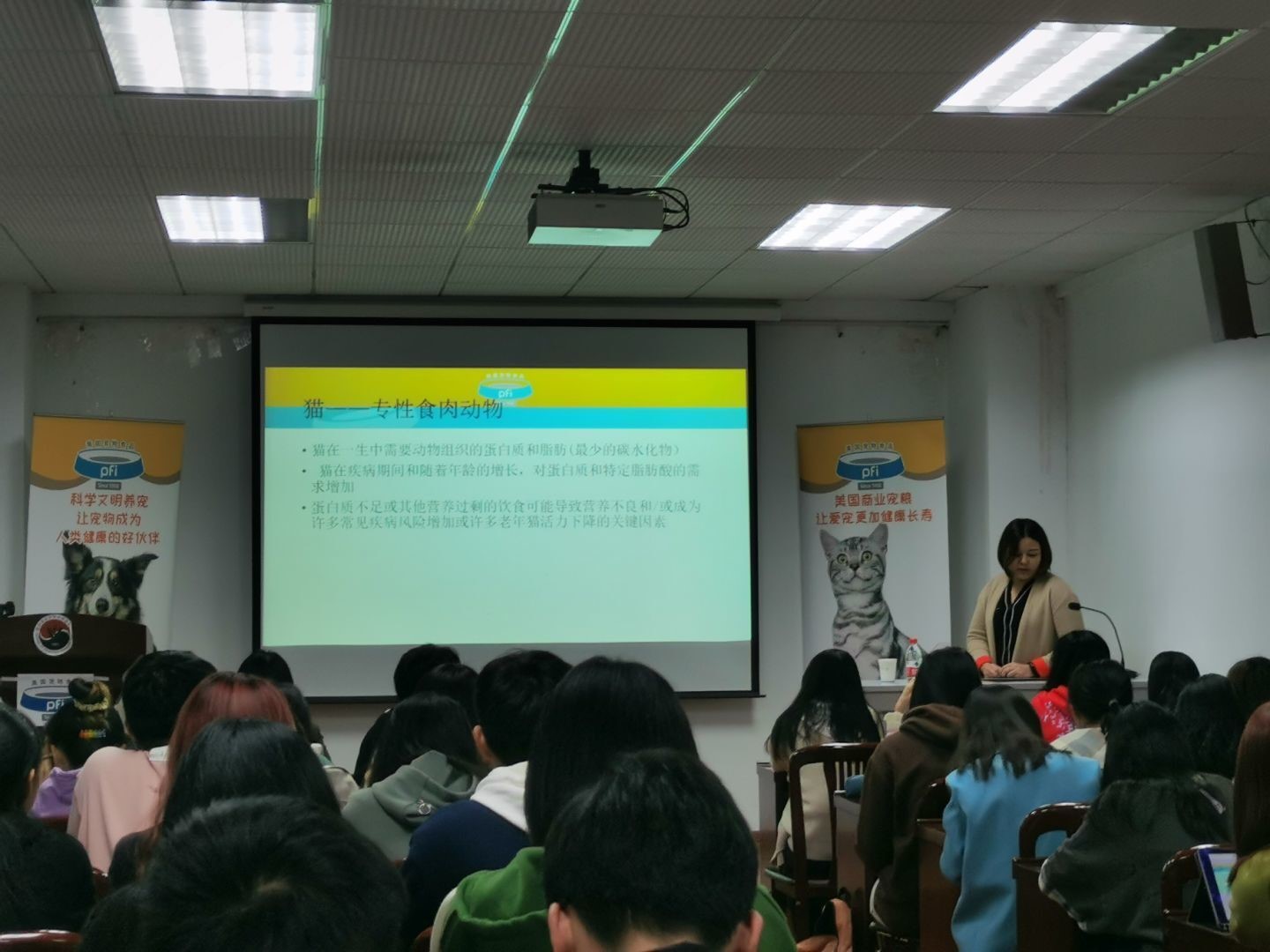 11月12日晚7点美国宠物食品协会宠物医师系列课程第四讲在william威廉中文官网逸夫楼3044顺利举办。本次课程题目为《猫的营养需求》,由现任艾贝尔中央猫科医院主任兽医师及小区技术经理陈舒蒙主讲。