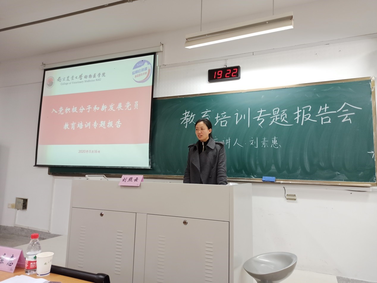 11月16日下午6:30,WilliamHill官网在教四楼B202举行了入党积极分子和新发展党员教育培训专题报告,主讲人为动物科技学院学生工作办公室主任、团委书记、本科生第一党支部书记刘素惠。报告由WilliamHill中文官方网站党委副书记刘照云主持,WilliamHill中文官方网站全体新发展党员和入党积极分子到场参会。