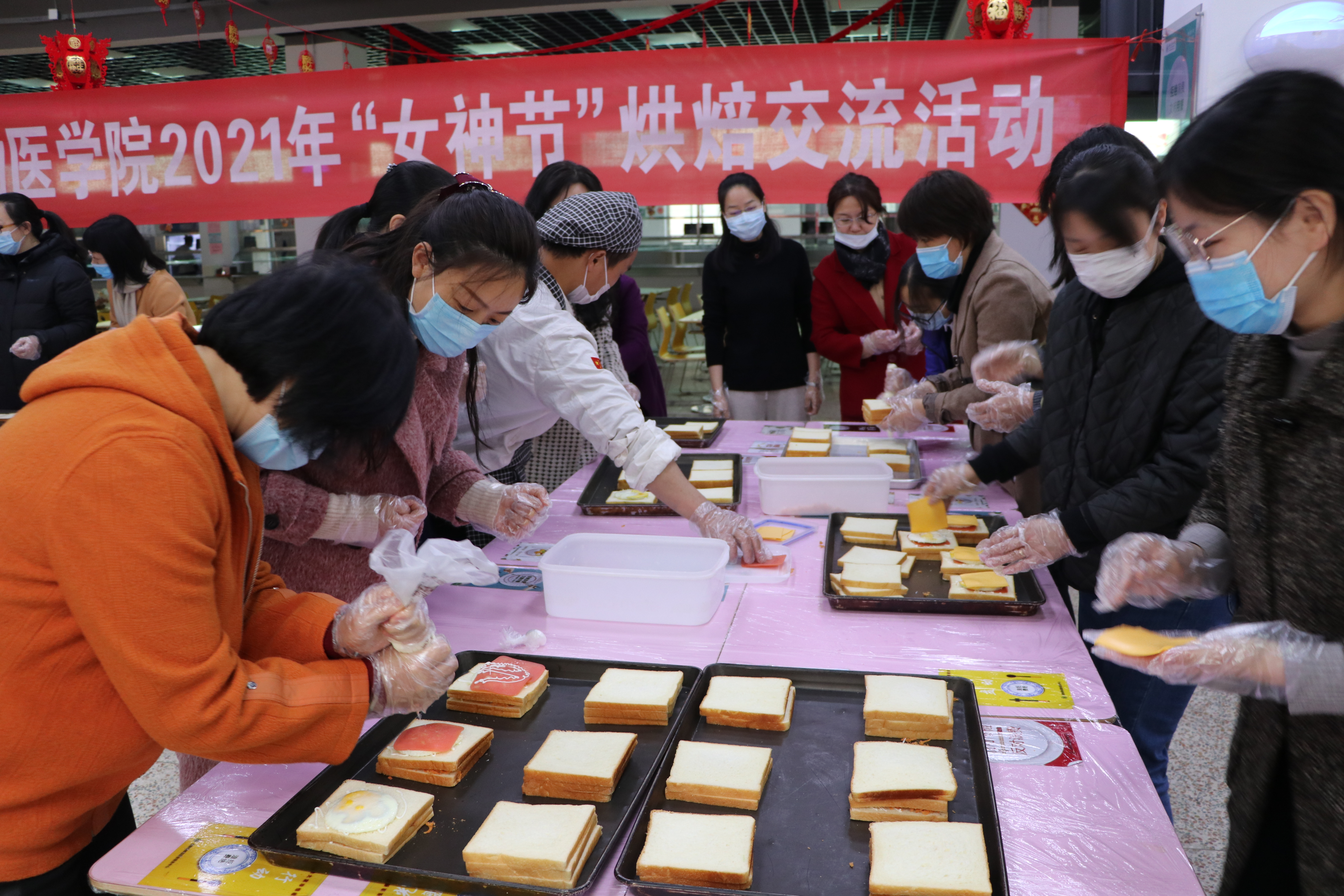 3月5日下午2:30,WilliamHill中文官方网站在南苑三食堂举办“2021年‘女神节’烘焙交流活动”,院党委书记姜岩、副书记刘照云等老师们齐聚一堂,共同参与此次趣味活动。
