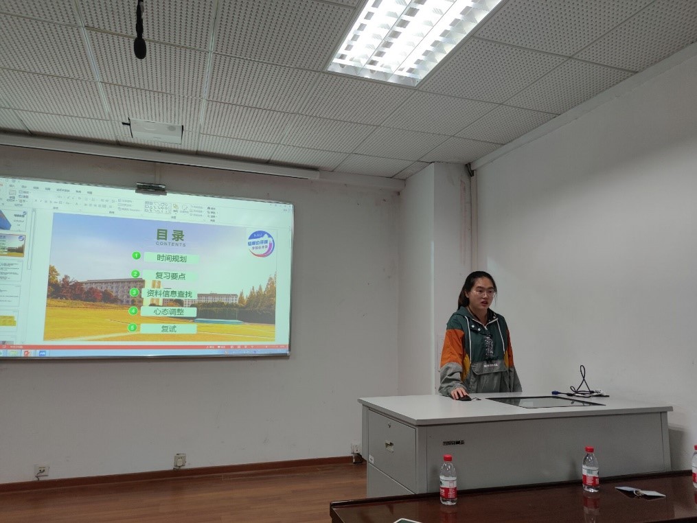 活动伊始,辅导员金洁南老师为我们做了关于考研简短的介绍,并希望同学们在这次活动中能有所收获,对未来考研方向与选择有更明确的想法。