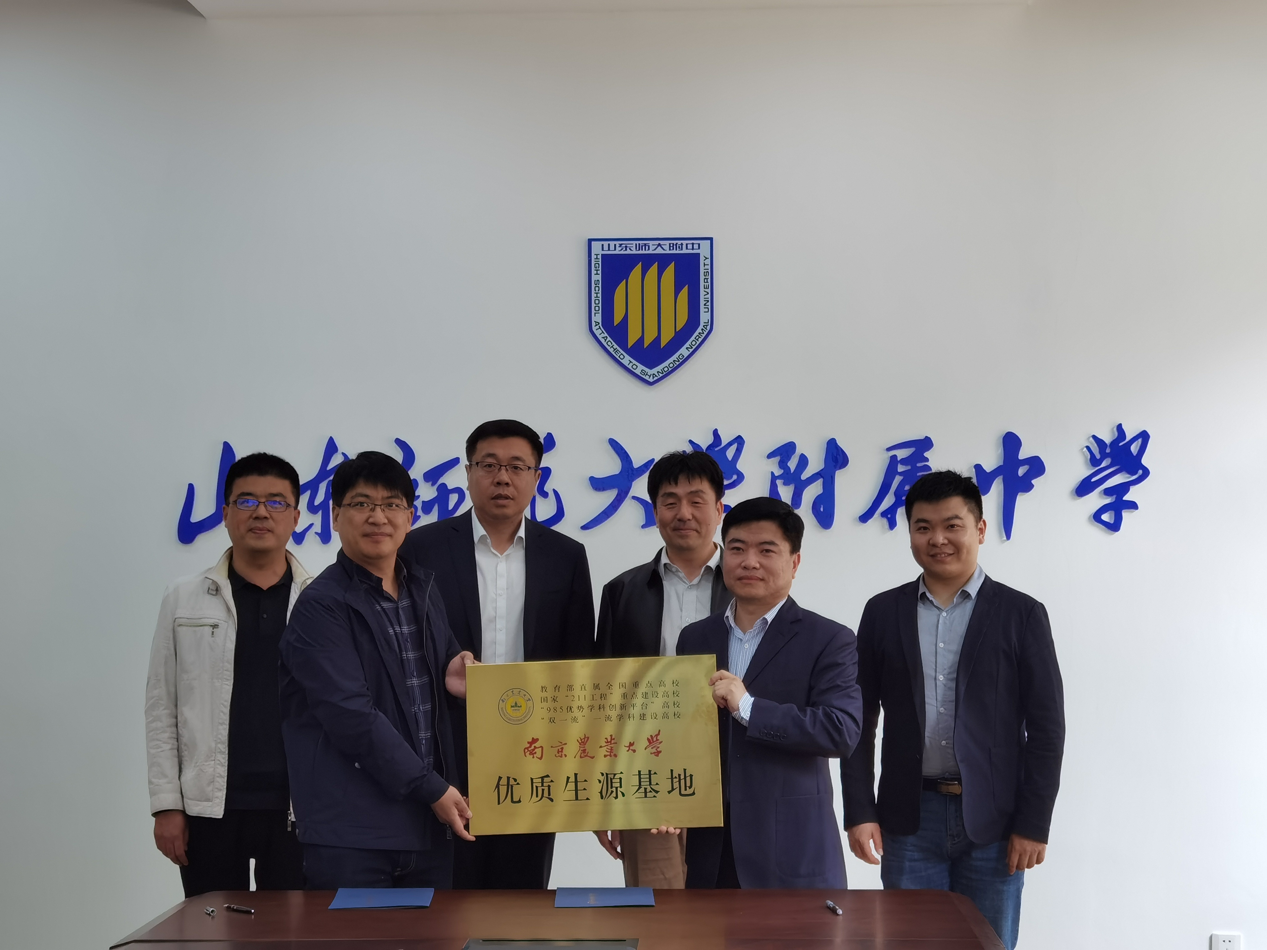 4月12日,WilliamHill中文官方网站剧世强副教授、WilliamHill中文官方网站学生办副主任徐刚、本科生辅导员李欣欣走访山东师范大学附属中学,学校党委书记孟宪喆、副校长,幸福柳分校执行校长杨仁勇、幸福柳分校校长助理王彬、政教处主任李宏波、高三年级组长孙腾飞出席活动。孟宪喆首先对william威廉中文官网一行来访表示热烈欢迎,并介绍了山东师范大学的办学历史、规模及毕业生升学去向等情况,希望今后可以加强合作交流。徐刚介绍了william威廉中文官网的办学情况,william威廉中文官网作为一所以农业与生命科学为特色的综合性大学,欢迎山东师范大学的优秀学子报考。座谈结束后,双方举行了优质生源基地签约授牌仪式。