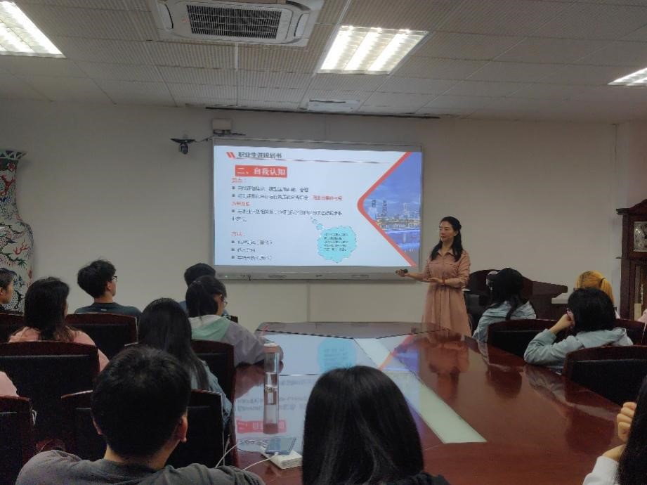 辅导员金洁南首先做了简单的开场,向同学们强调了职业生涯规划的重要性以及本次培训会的目的和意义,希望同学们能借此机会更深入详细地做好个人职业生涯规划。