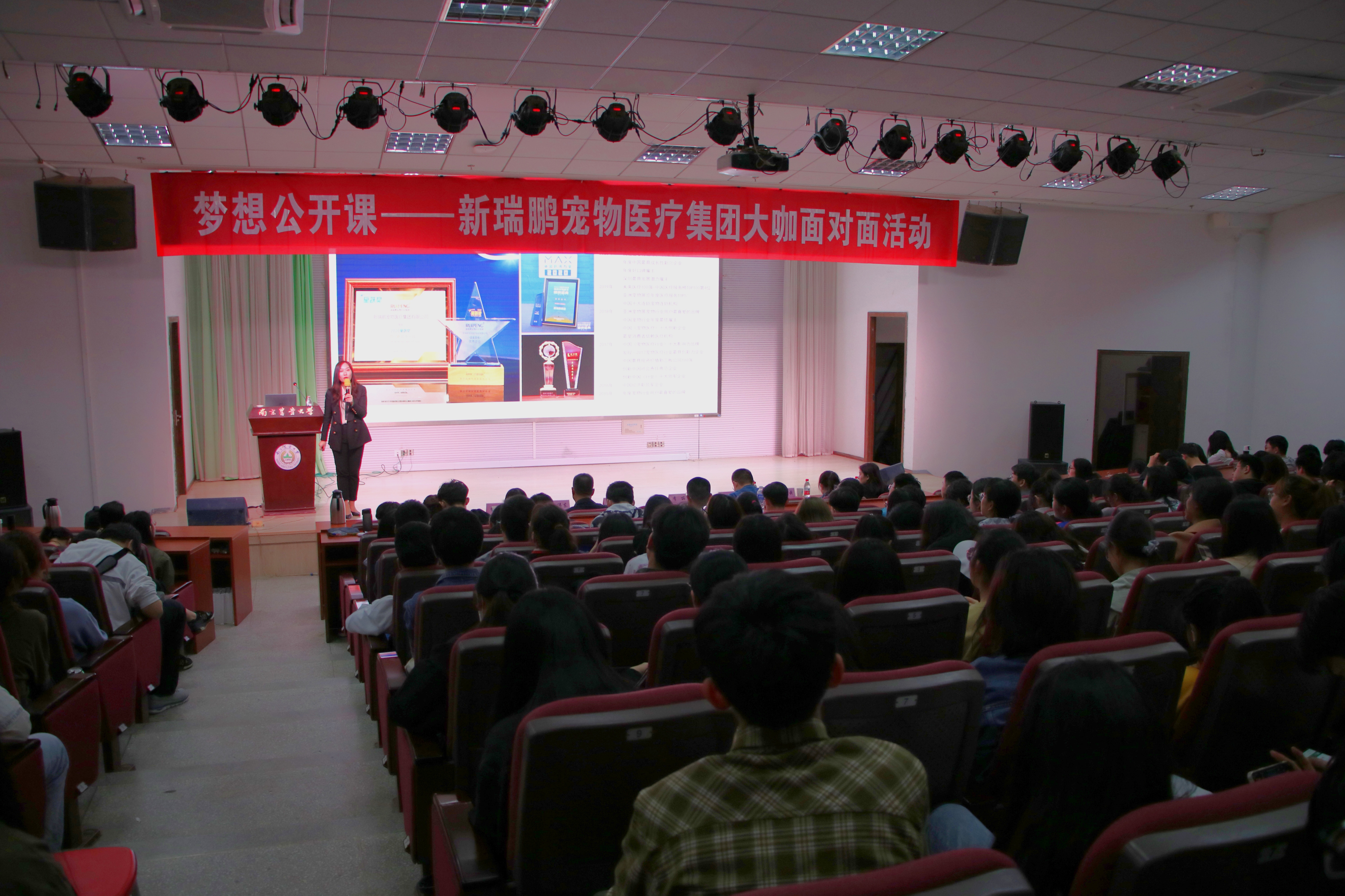4月28日晚上7:00,WilliamHill中文官方网站“梦想公开课”——新瑞鹏宠物医疗集团大咖面对面活动在教四楼报告厅举办。WilliamHill中文官方网站党委书记姜岩,党委副书记刘照云,辅导员金洁南、徐刚、李欣欣;新瑞鹏宠物医疗集团副总裁李丽,华东副总经理张伟东,总部招聘总监李鹏,人力行政部主管张蒙、刘晓芹,以及WilliamHill中文官方网站2018级、2020级全体本科生参与此次讲座。