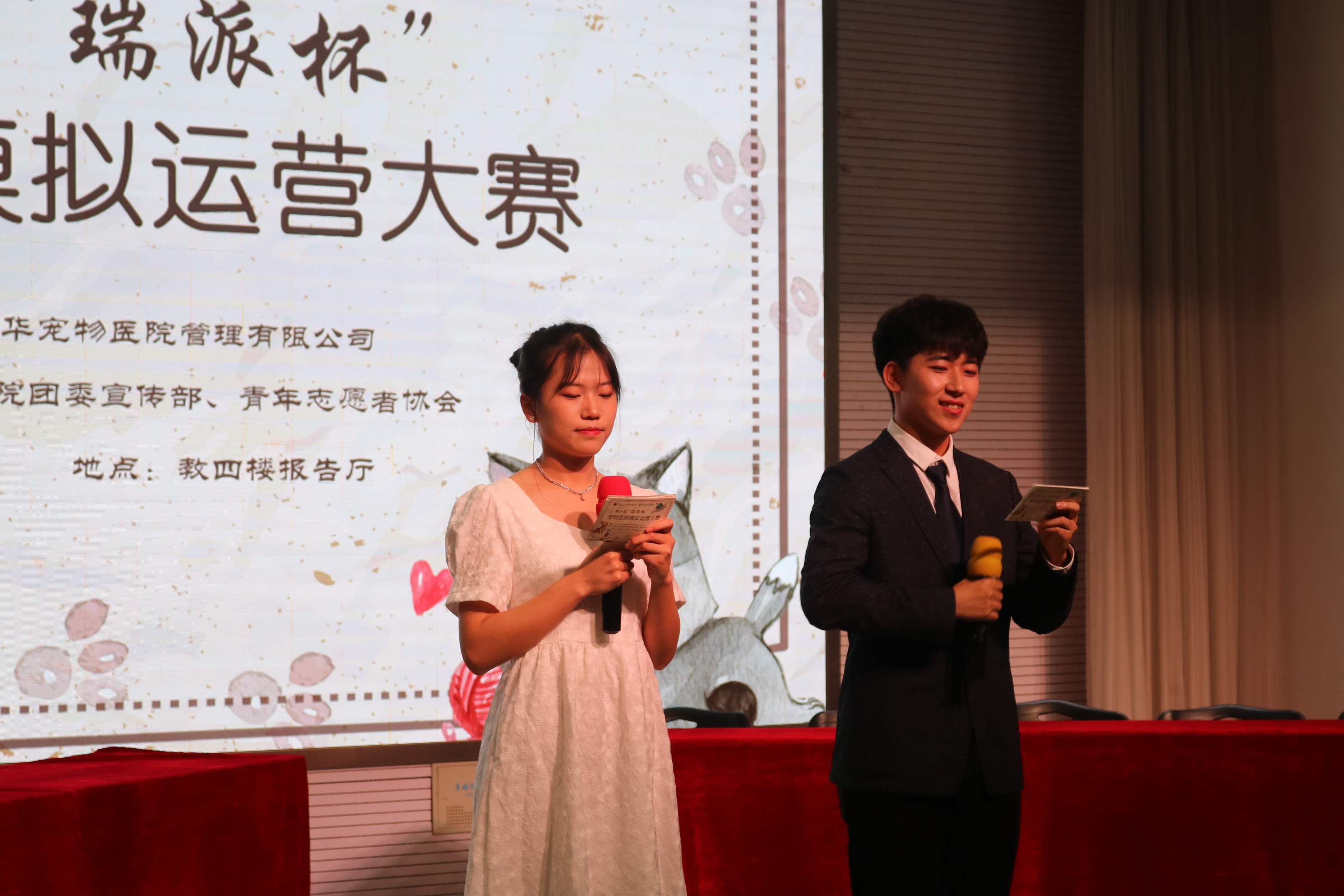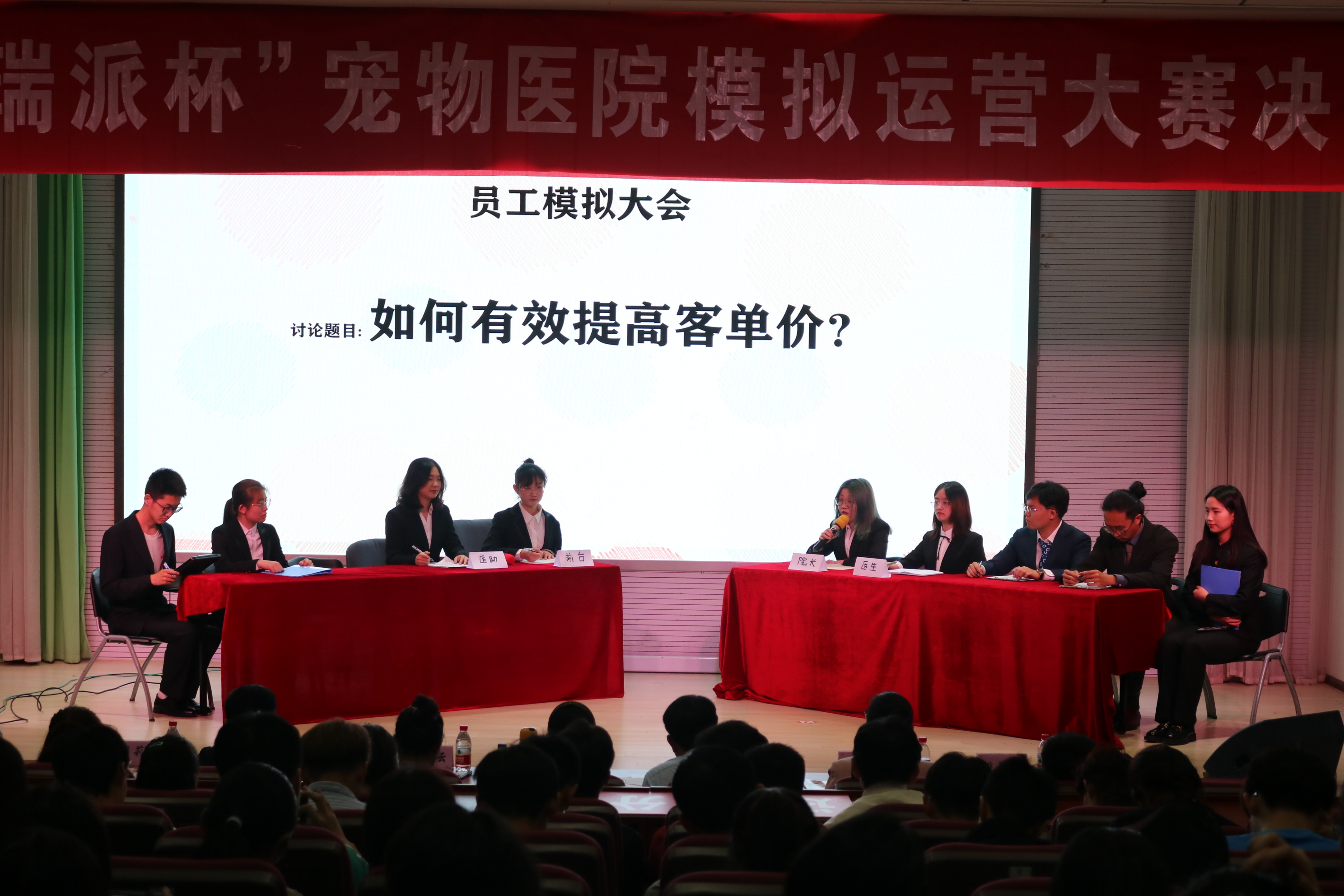 5月7日晚,WilliamHill中文官方网站主办的第五届“瑞派杯”宠物医院模拟运营大赛决赛在教四楼报告厅成功举行。出席本次比赛的评委有:瑞派宠物医院华东管理公司副总经理马媛媛女士、运营总监裴志新先生,WilliamHill中文官方网站党委副书记刘照云老师,动物医院院长赵艳兵老师,学生工作处教育管理科黄芳老师,就业指导中心周莉莉老师,团委宣传教育部姚敏磊老师。
