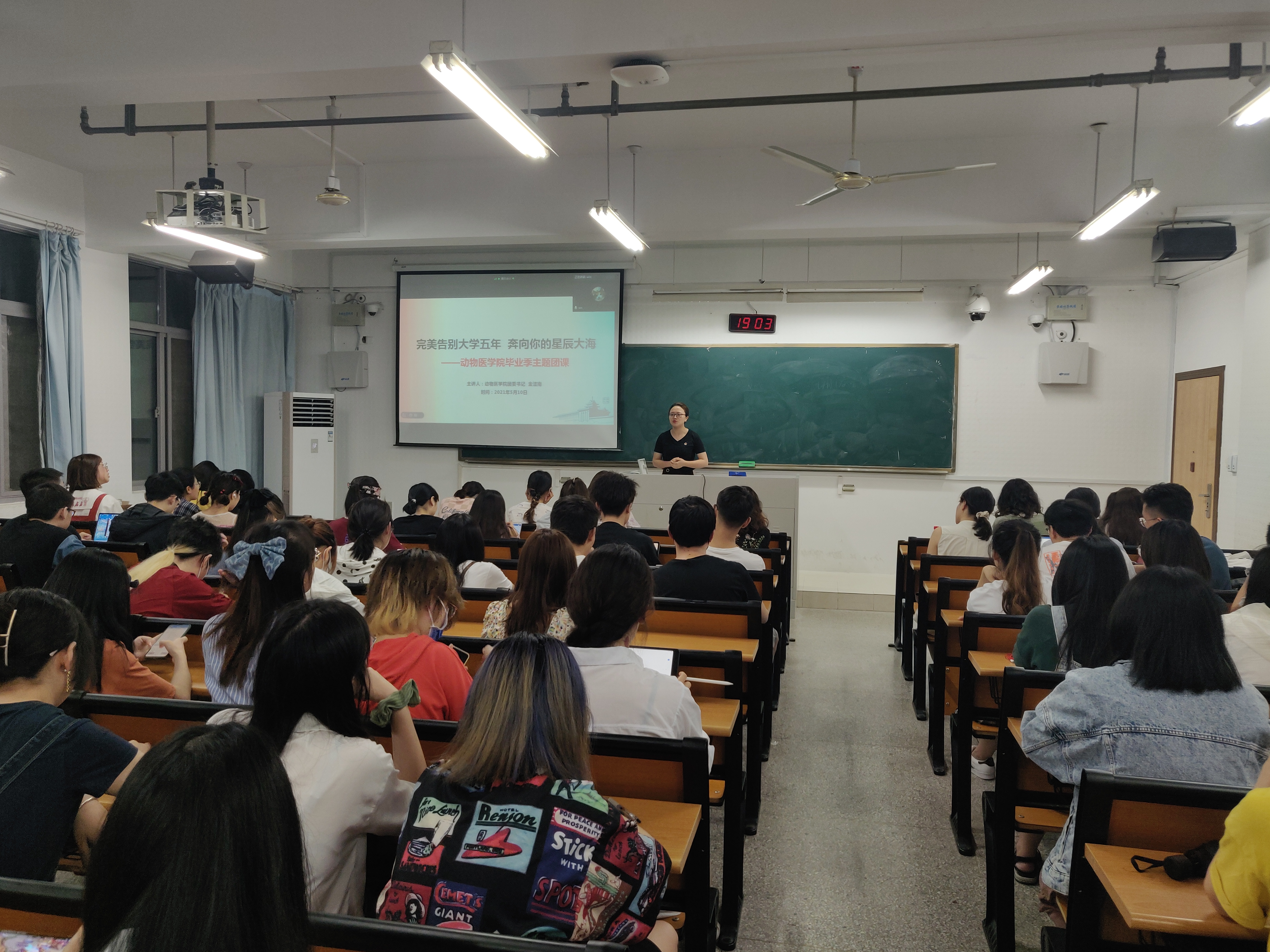 结合近期毕业生工作,金洁南围绕就业派遣、团组织转接、毕业离校等工作进行了介绍,重点强调了毕业生诚信离校、安全离校、文明离校等注意事项。