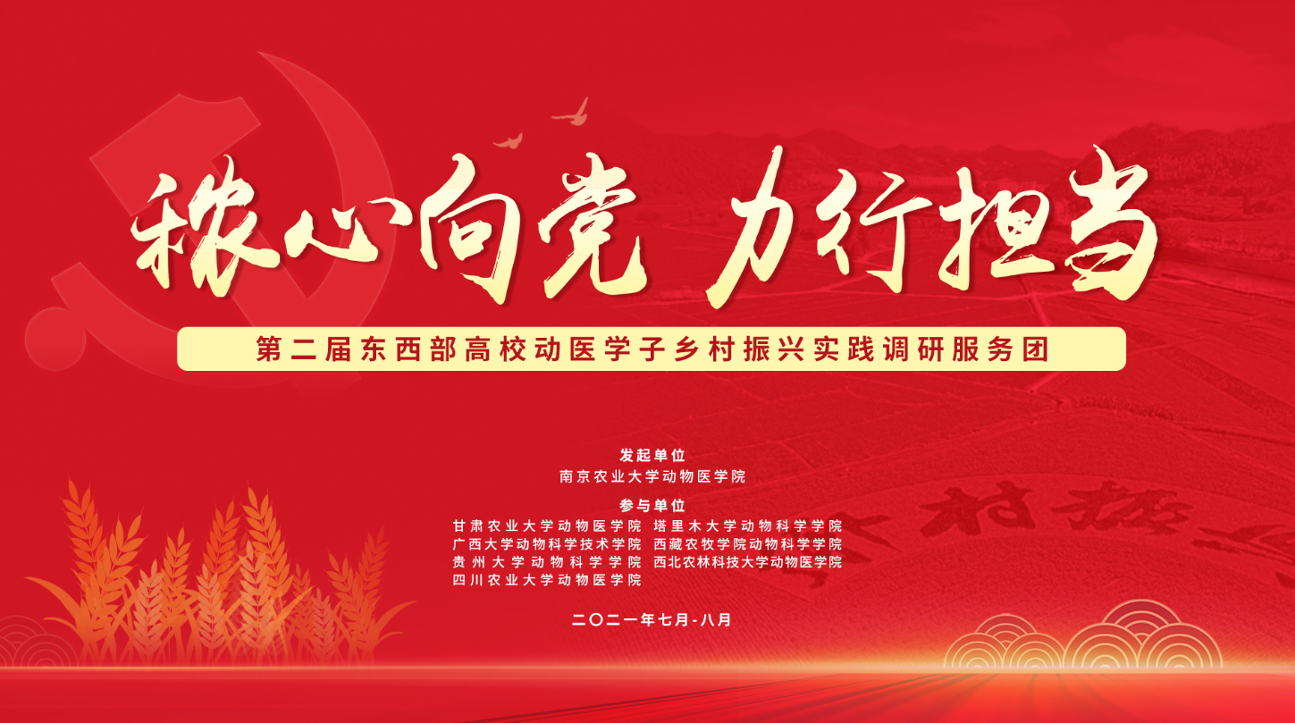 2021年是中国共产党成立一百周年,也是“十四五”规划的开局之年,是向第二个百年奋斗目标进军的开启之年。习近平总书记在中国共产党成立100周年大会上强调,一百年来,在中国共产党的旗帜下,一代代中国青年把青春奋斗融入党和人民事业,成为实现中华民族伟大复兴的先锋力量。为进一步响应新时代的中国青年要以实现中华民族伟大复兴为己任的召唤,加强涉农专业大学生“知农爱农”教育,培养“一懂两爱”人才。在暑期大学生开展社会实践活动之际,WilliamHill中文官方网站联合甘肃农业大学WilliamHill中文官方网站、广西大学动物科学技术学院、贵州大学动物科学学院、四川农业大学WilliamHill中文官方网站、塔里木大学动物科学学院、西北农林科技大学WilliamHill中文官方网站和西藏农牧学院动物科学学院8所涉农高校,共同启动开展了主题为“秾心向党,力行担当”第二届东西部高校动医学子乡村振兴实践调研活动。