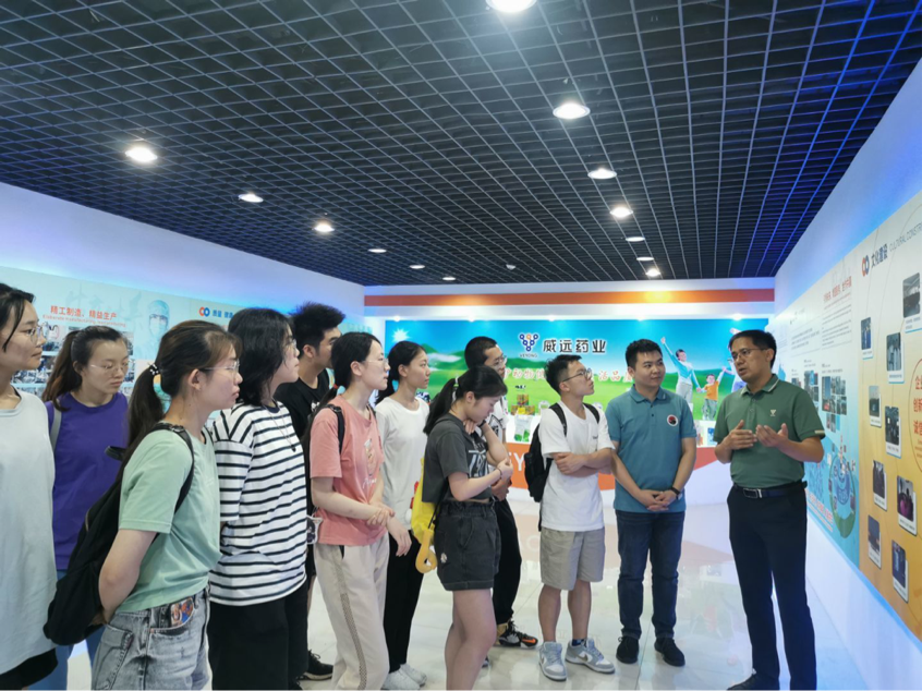 实践团队来到威远药业,负责人李建杰介绍了威远药业的发展历史、技术研发、国际市场等让同学们对威远有整体了解,同学们看到了威远的产品,了解了“原药制剂一体化发展路径”。