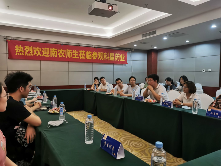 团队成员通过观看科星药业公司宣传片,学习了自动化的生产模式,深刻了解公司“只为做好每一款产品”的宗旨。公司的总经理杨总为大家简要介绍科星公司及公司的发展规划,并结合自己的职业生涯经历给同学们提出了宝贵的建议。