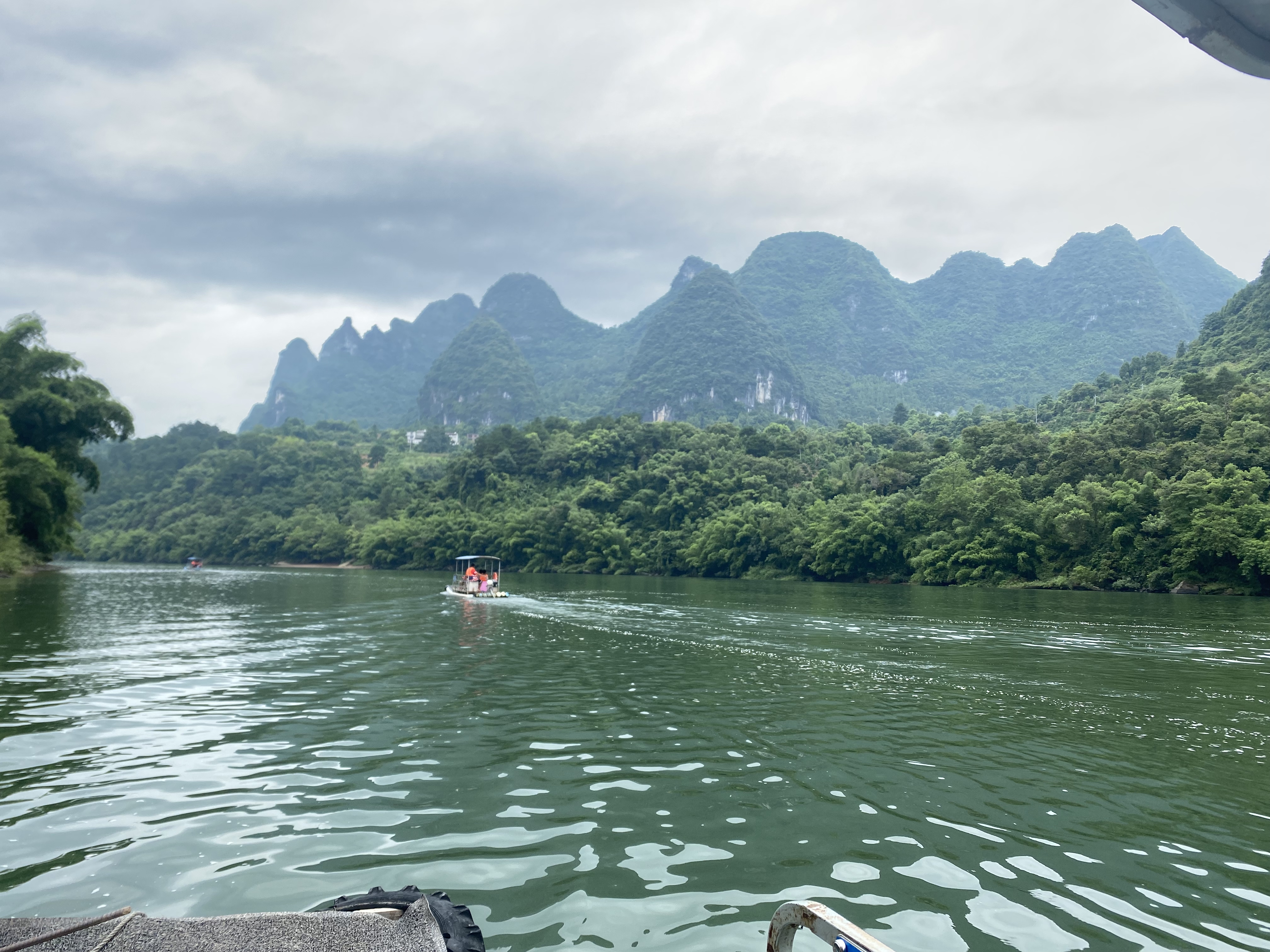 到了杨堤码头,宽阔的视野令大家眼前一亮。拔地而起的山峰连绵不绝、青翠欲滴,云雾缭绕中更是奇雄多姿;清澈见底的水蜿蜒曲折、晶莹翠绿,微风徐徐中更见阵阵涟漪。