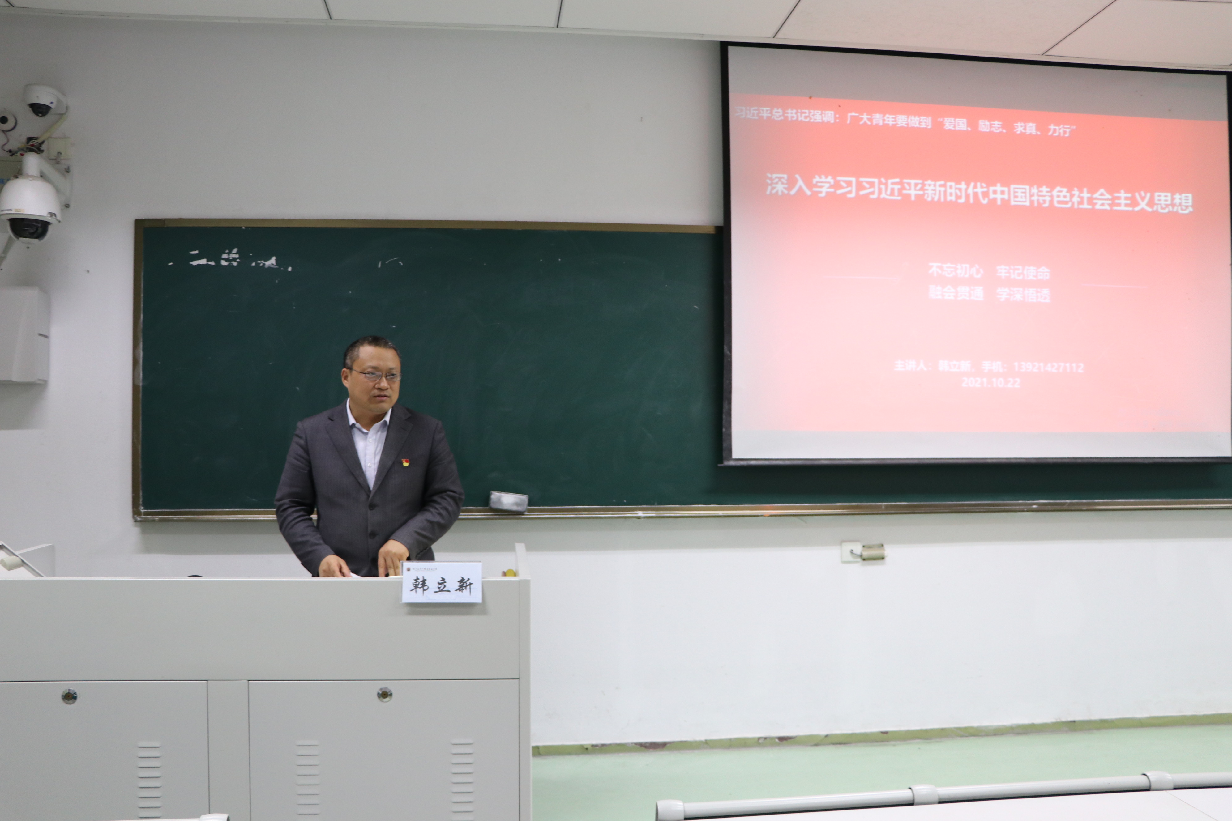 10月22日下午6:00,WilliamHill官网在主楼107教室举行了“新时代的召唤”入党积极分子的线下实践教学活动,主讲人为外国语学院党委副书记韩立新。报告由WilliamHill中文官方网站党委副书记刘照云主持,WilliamHill中文官方网站2021年秋季全体新发展入党积极分子到场参会。