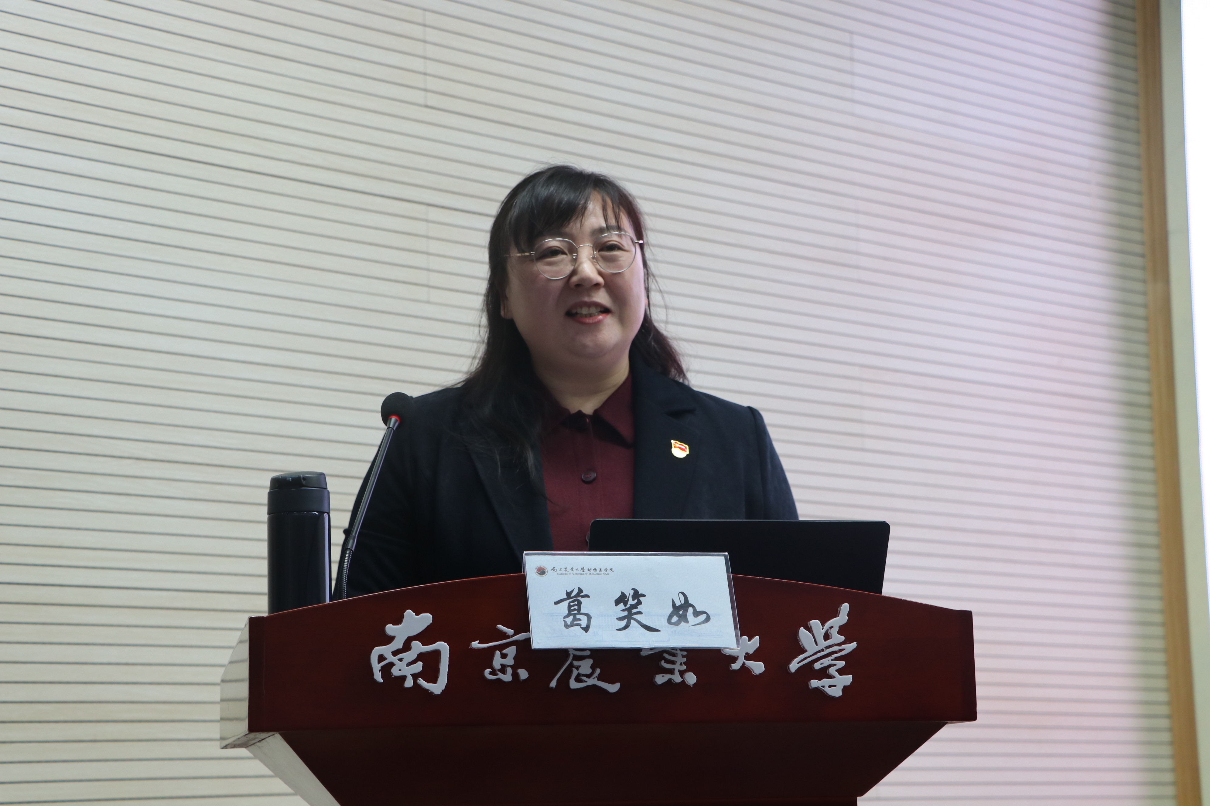 马克思主义学院葛笑如教授,围绕“百年光荣 砥砺奋进 夺取全面建设社会主义现代化强国新胜利——学习习近平总书记‘七一’重要讲话精神”这一主题,从深入领会习近平总书记“七一”重要讲话的重点内容、充分认识习近平总书记“七一”重要讲话的重大意义和深刻理解和把握习近平总书记“七一”重要讲话提出的新思想新观点新要求三个方面展开。葛笑如充分阐述了习近平总书记“七一”重要讲话的重点内容和重大意义,并详细解读了习近平总书记“七一”重要讲话提出的新思想新观点新要求,强调要把学习贯彻习近平总书记重要讲话精神作为一项重要政治任务抓紧抓好。