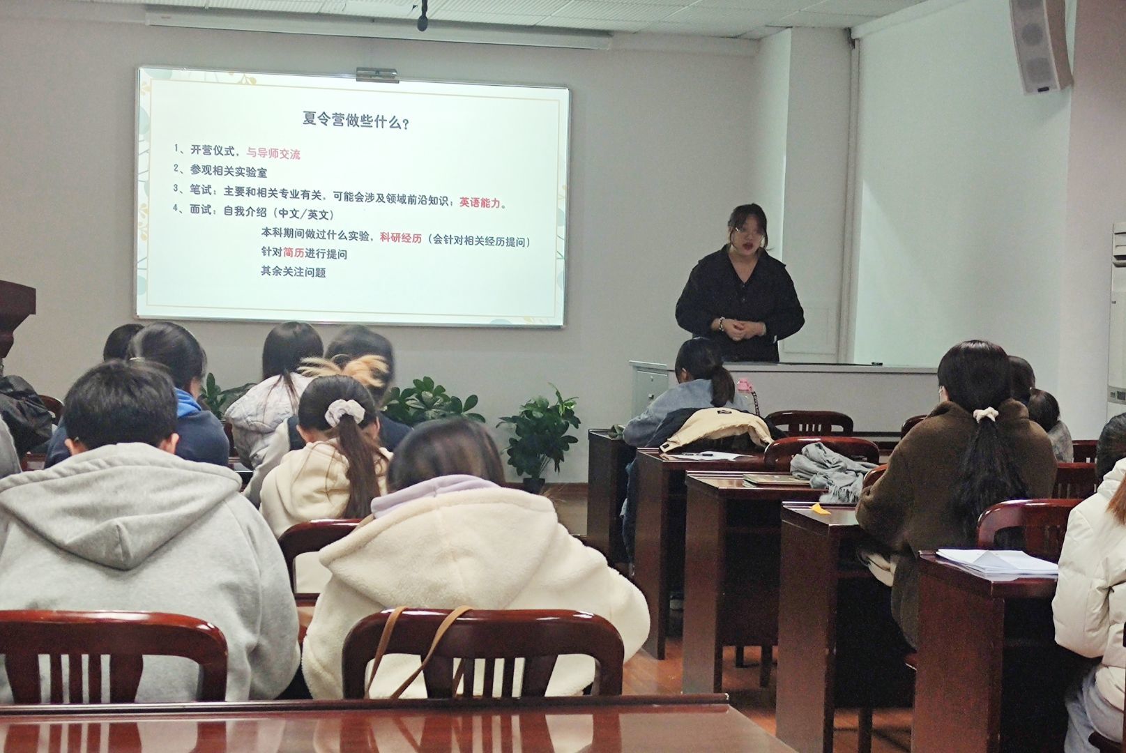 活动中,毕业生党员结合个人保研经历、面试技巧等,为支部成员提供了意见和参考。保研至上海交通大学的程子乐和李南南重点介绍了保研流程、夏令营流程、前期准备及注意事项。保研至中国农业大学的黄欣桐、汪道奇和张萌详细讲述了中农的夏令营流程和保研条件,并分享了个人经验。保研至william威廉中文官网的朱玲玲和王阳解释了何为“九推”,分享了保研南农的初心及兽医的使命。