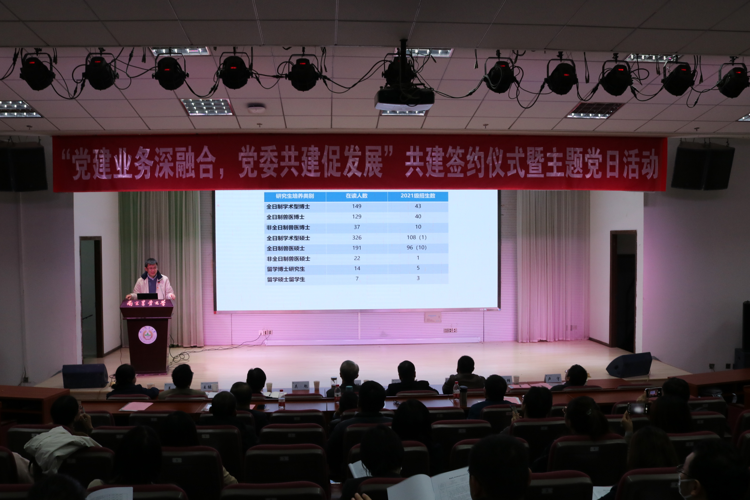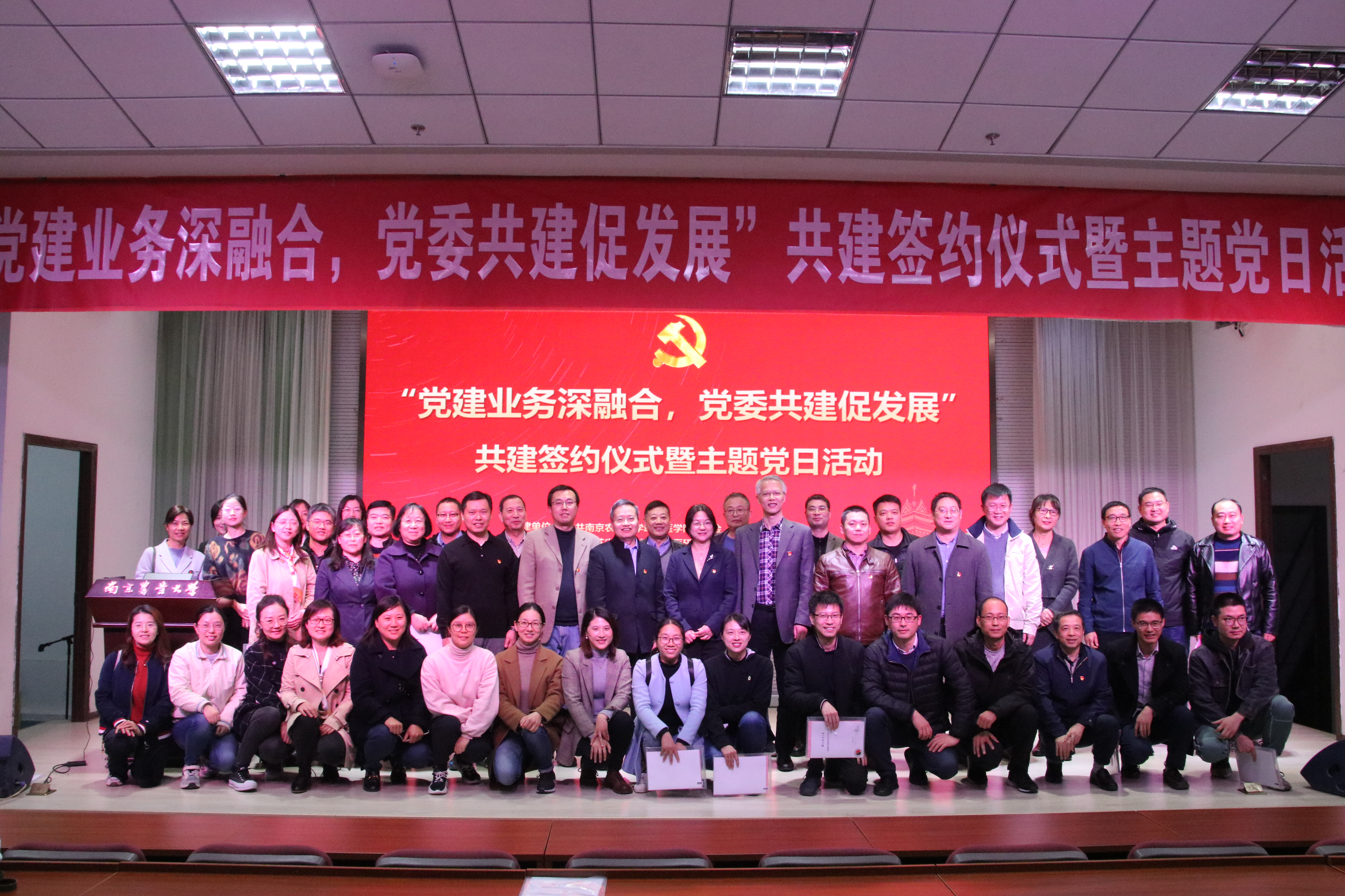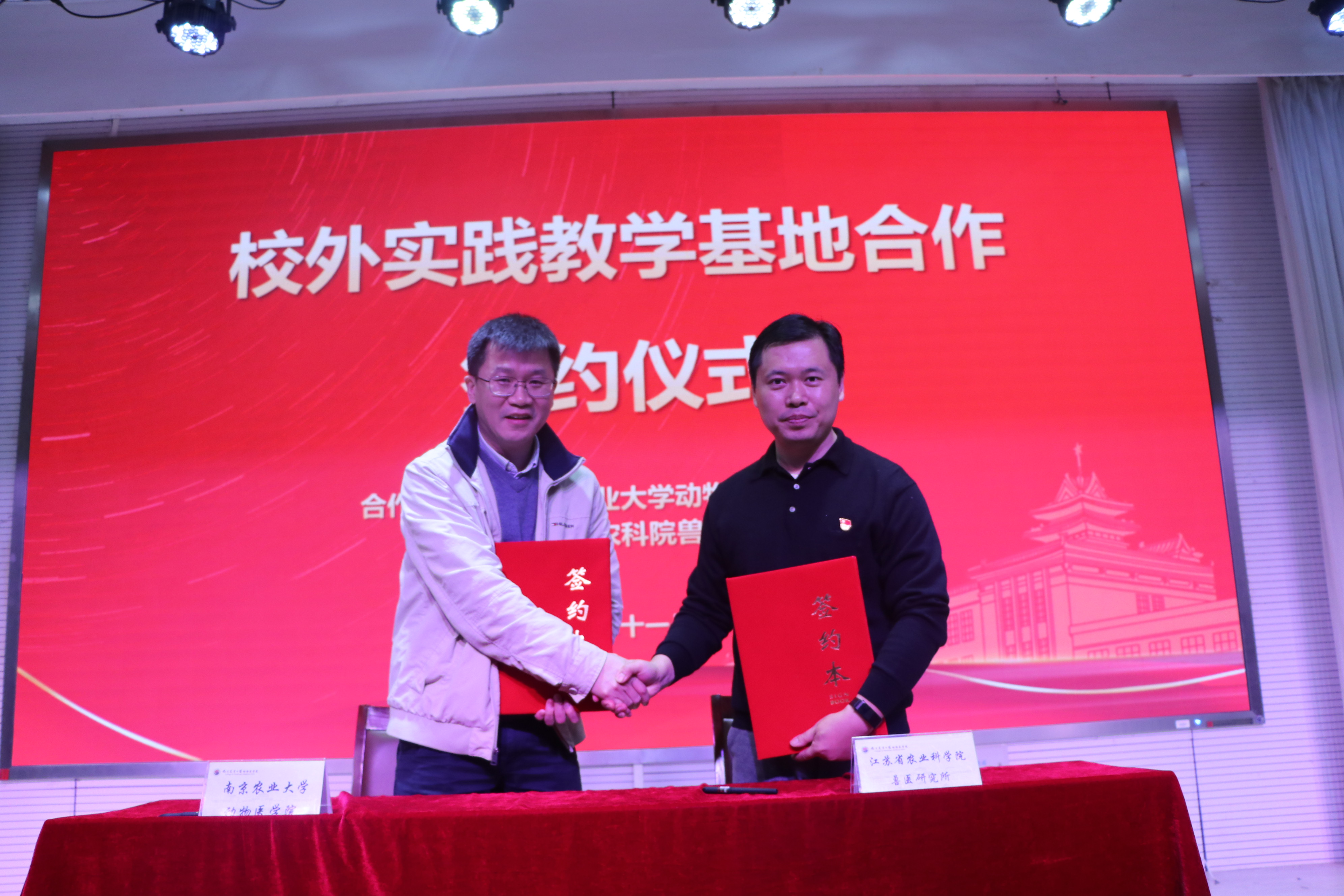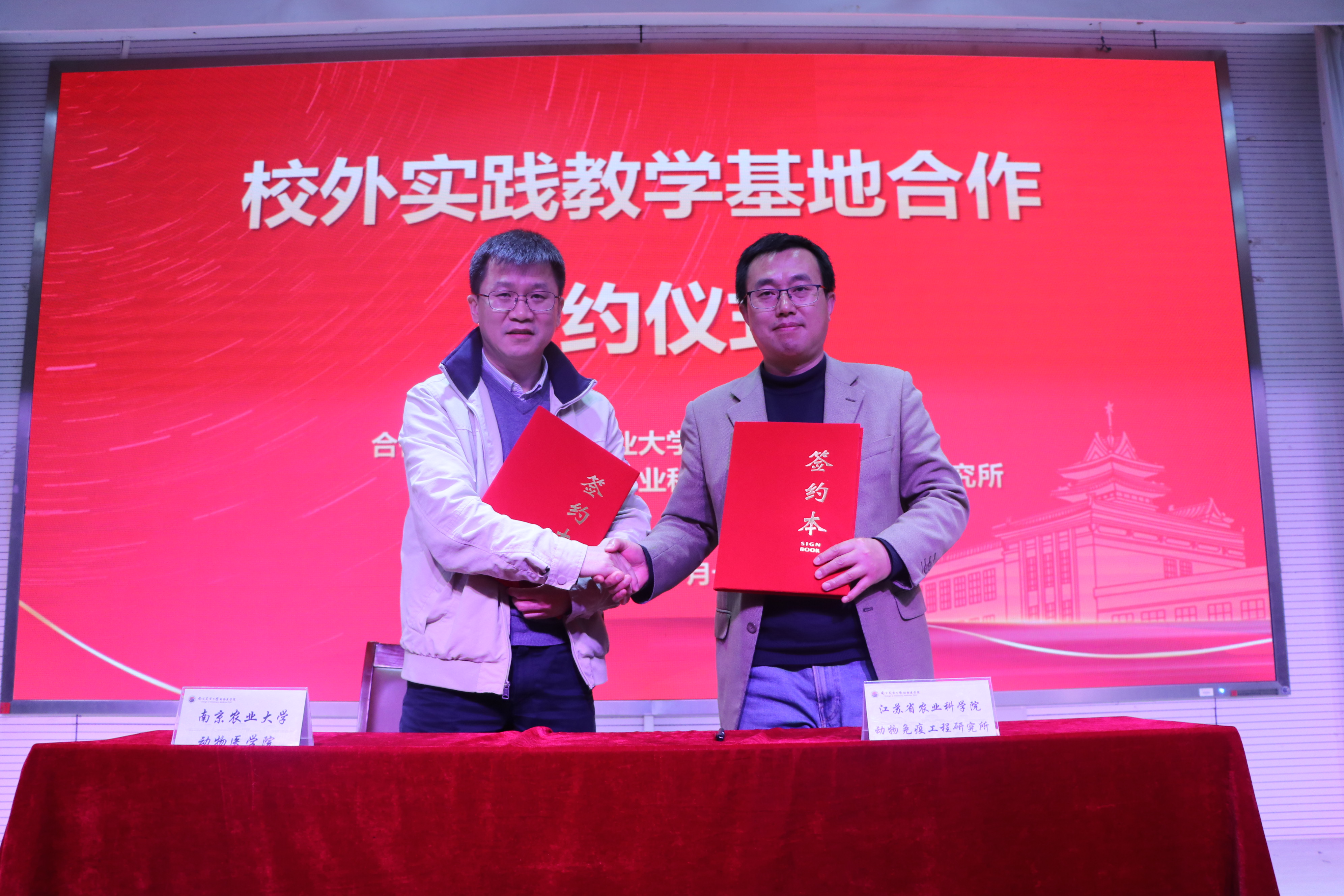 11月19日下午,“党建业务深融合,党委共建促发展”共建签约仪式暨主题党日活动在william威廉中文官网教四楼报告厅隆重举行。WilliamHill中文官方网站党委书记姜岩,副院长苗晋锋,江苏省农业科学院兽医研究所党总支书记李胜,所长李彬,副所长冯志新,江苏省农业科学院动物免疫工程研究所党总支书记、所长赵永前,副书记、副所长吴魁,副所长卢宇,副所长王继春出席仪式。WilliamHill中文官方网站党委成员代表、江苏省农业科学院兽医研究所党总支、免疫所党支部成员代表、兽医所、免疫所兼职研究生导师和WilliamHill中文官方网站研究生导师参加活动。仪式由姜岩主持。