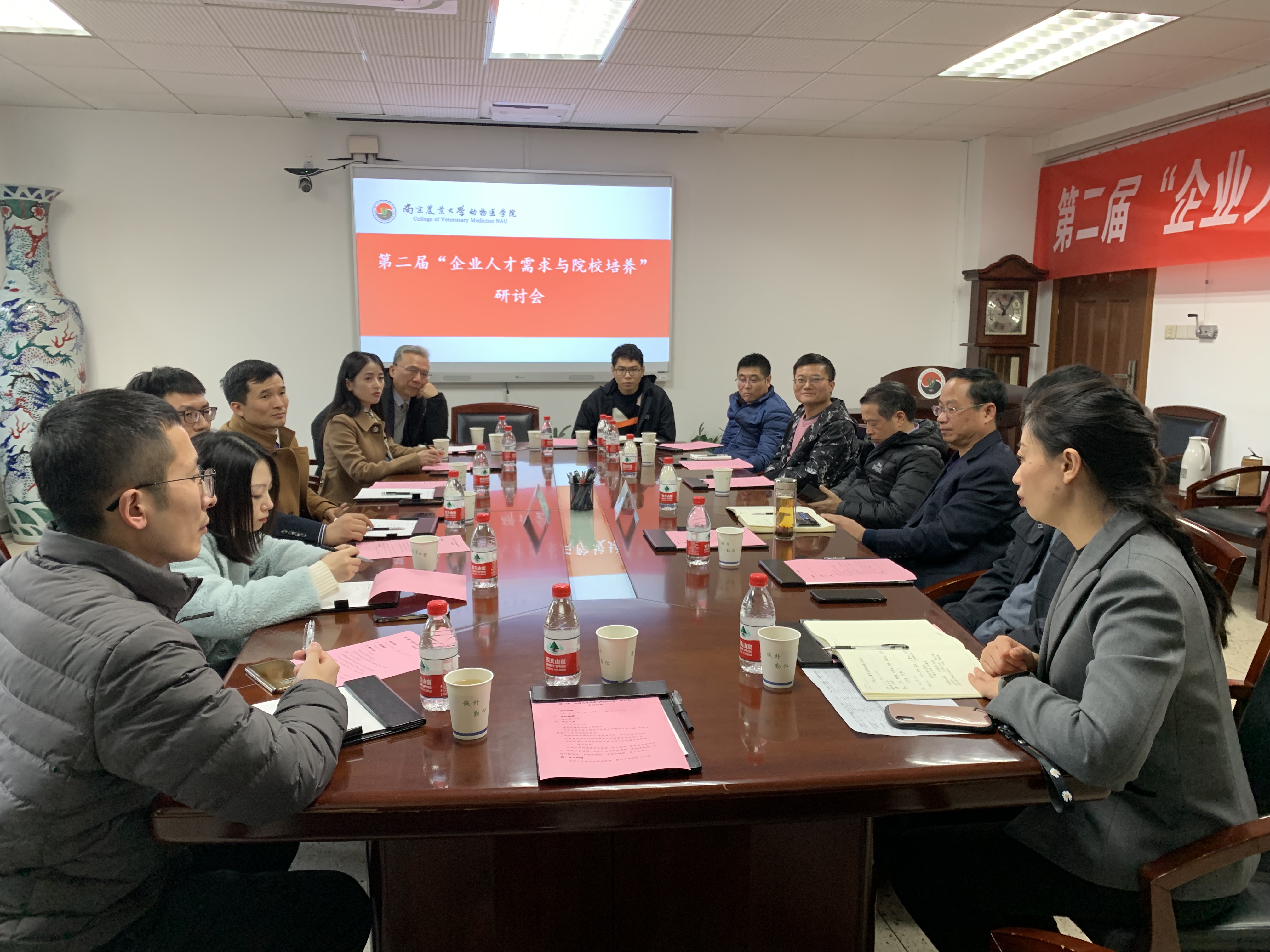 北京金诺百泰生物技术有限公司、道格凯特宠物医院等5家企业代表与学院教师代表进行了座谈,WilliamHill中文官方网站院长姜平、党委副书记刘照云、副院长苗晋锋、临床兽医系系主任刘家国等8位教师出席了会议。座谈会上,校企双方围绕行业发展现状、人才培养等方面进行洽谈,就当前“人才招聘难”、“诊断行业人才需求”、“中兽药行业人才需求”等问题进行了深度交流。姜平表示,校企合作首先应建立信任基础,寻找恰当的合作模式,才能不断互融、互促、互进。