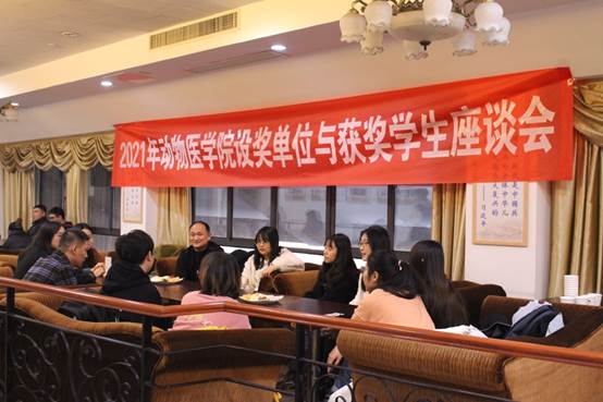 颁奖典礼结束后,勃林格殷格翰动物保健(上海)有限公司、江苏恒丰强生物技术有限公司等6家企业代表与获奖学生代表进行了座谈,面对面的沟通,企业代表解答了同学们对于学业及未来职业规划的疑问。