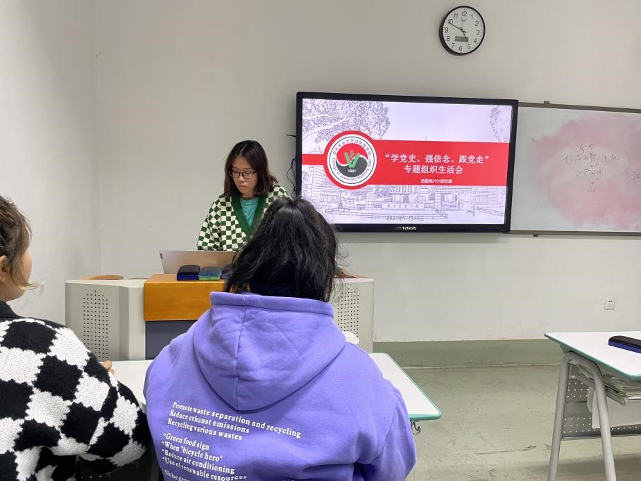 动医201班,在开展以“学党史、强信念、跟党走”为主题的组织生活会中,代表同学上台发言,让同学们更加了解“中国”,认识党史,心向党中央,并且秉承着爱国精神,为中国美好未来,积极努力奋斗。