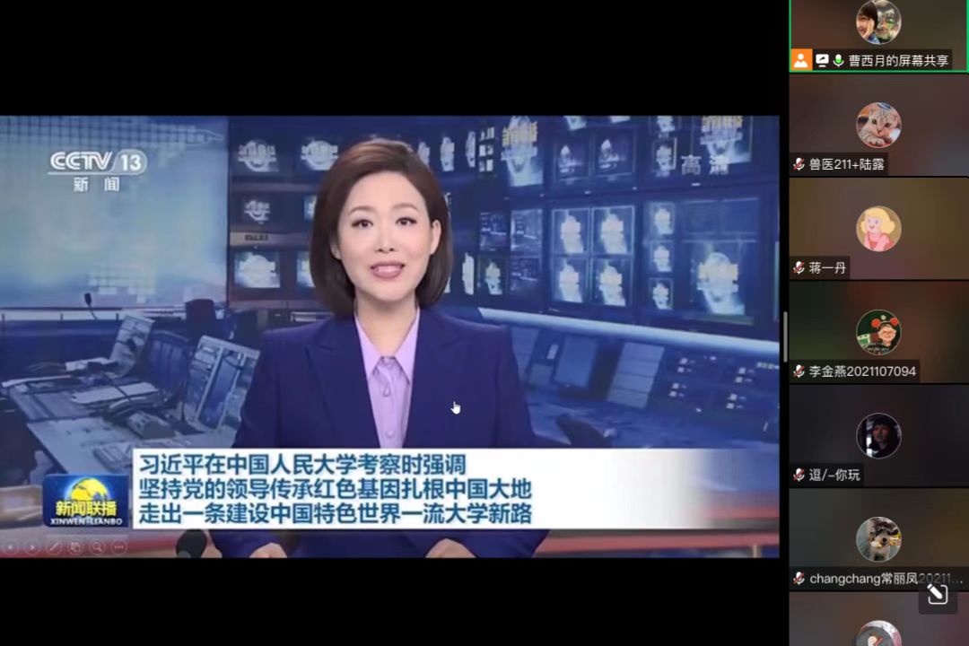 2022年5月4日,WilliamHill中文官方网站召开集中学习习近平总书记在中国人民大学考察时的重要讲话精神会议,应疫情防控要求,本次学习会以“线上+线下”形式开展。WilliamHill中文官方网站研究生辅导员安琪出席本次学习会,学院研究生通过线上、线下多种形式积极参与。