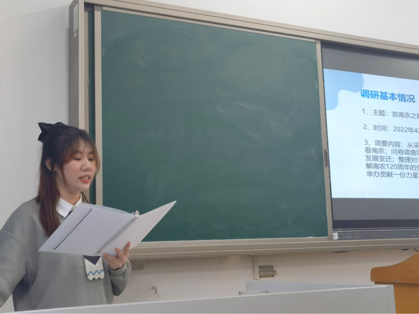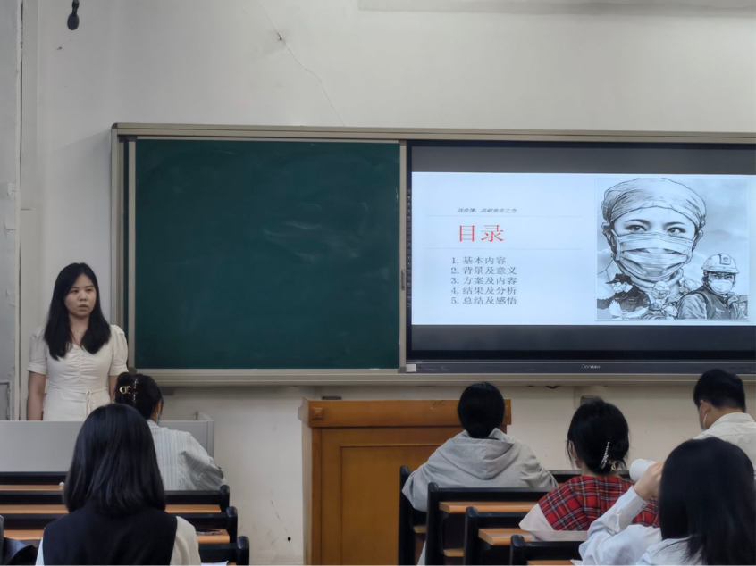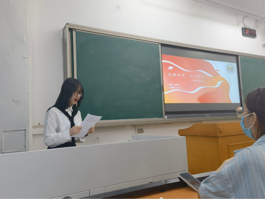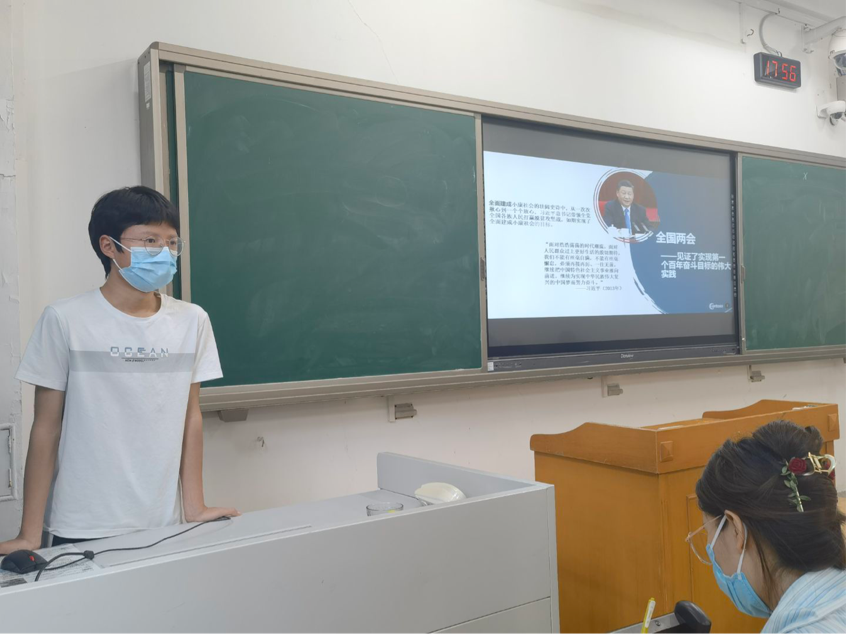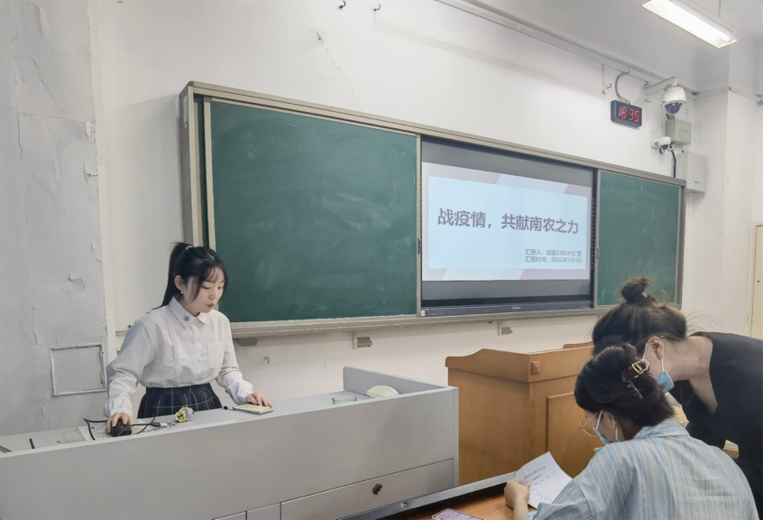 根据抽签顺序,7个班级的汇报人依次上台分享,分别进行“庆校辰,共言南农之程”、“ 战疫情,共献南农之力”、“ 言冬奥,共襄大国之举”、“ 看两会,共聚民众之生”和“ 看两会,共论育人之案”这五个主题板块的答辩。同学们展示调研方案,讲述调研内容,分享调研感悟,全方位展示了针对这五个主题的所做所思所感。另外,为了更生动的展示调研结果,同学们还设计了海报,并制作视频从而展现主题。