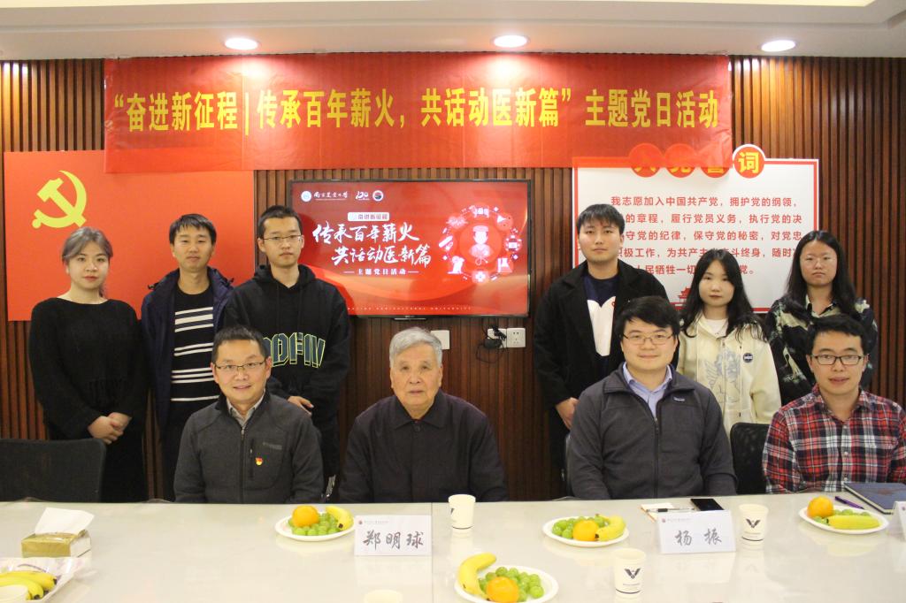 听了老师们的分享,为百年兽医的发展感到振奋,也为自己肩上的使命倍感光荣。作为00后党员,也作为新一代兽医人,我们要秉承初心,深刻领悟党的二十大精神,努力成为报国兴邦、扎根大地的动医人。” 本科生第一党支部成员、国家奖学金获得者王峥如是说。与会青年党员也向郑明球教授请教自己现阶段在科研、学习等方面存在的问题,老院长郑明球及其他老师做了详细解答和热烈讨论,并鼓励同学们多做笔记,将理论与实践相结合,积极投身于实践中去。