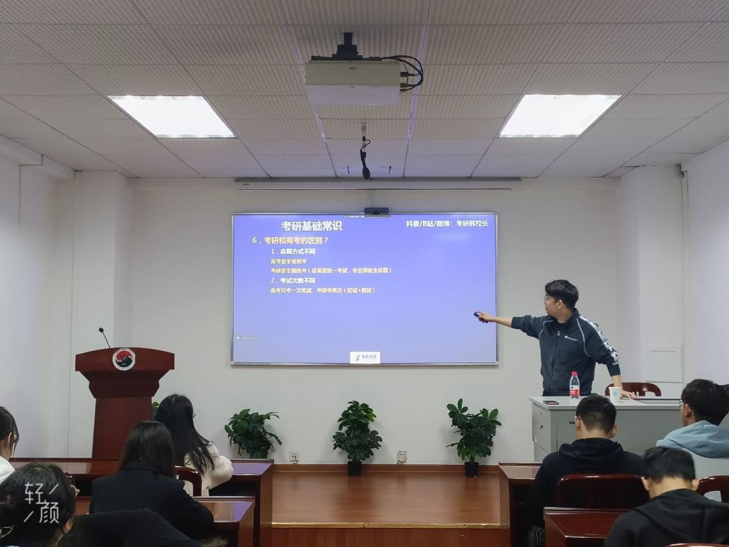 活动最后,韩校长留下“坚持”“手机”两个词语,以此告诫同学们考研的关键就在于每日不懈的坚持和自我对的外界干扰的自控力。