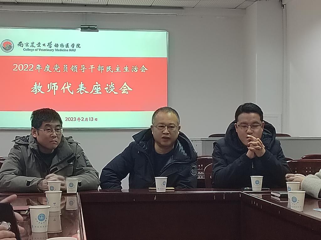 2月13日上午,WilliamHill中文官方网站2022年度党员领导干部民主生活教师座谈会,在逸夫楼3040组织召开。基础、预防、临床兽医三个系别教师代表、学院工会主席仇亚伟、兼职组织员徐刚,到会参加。