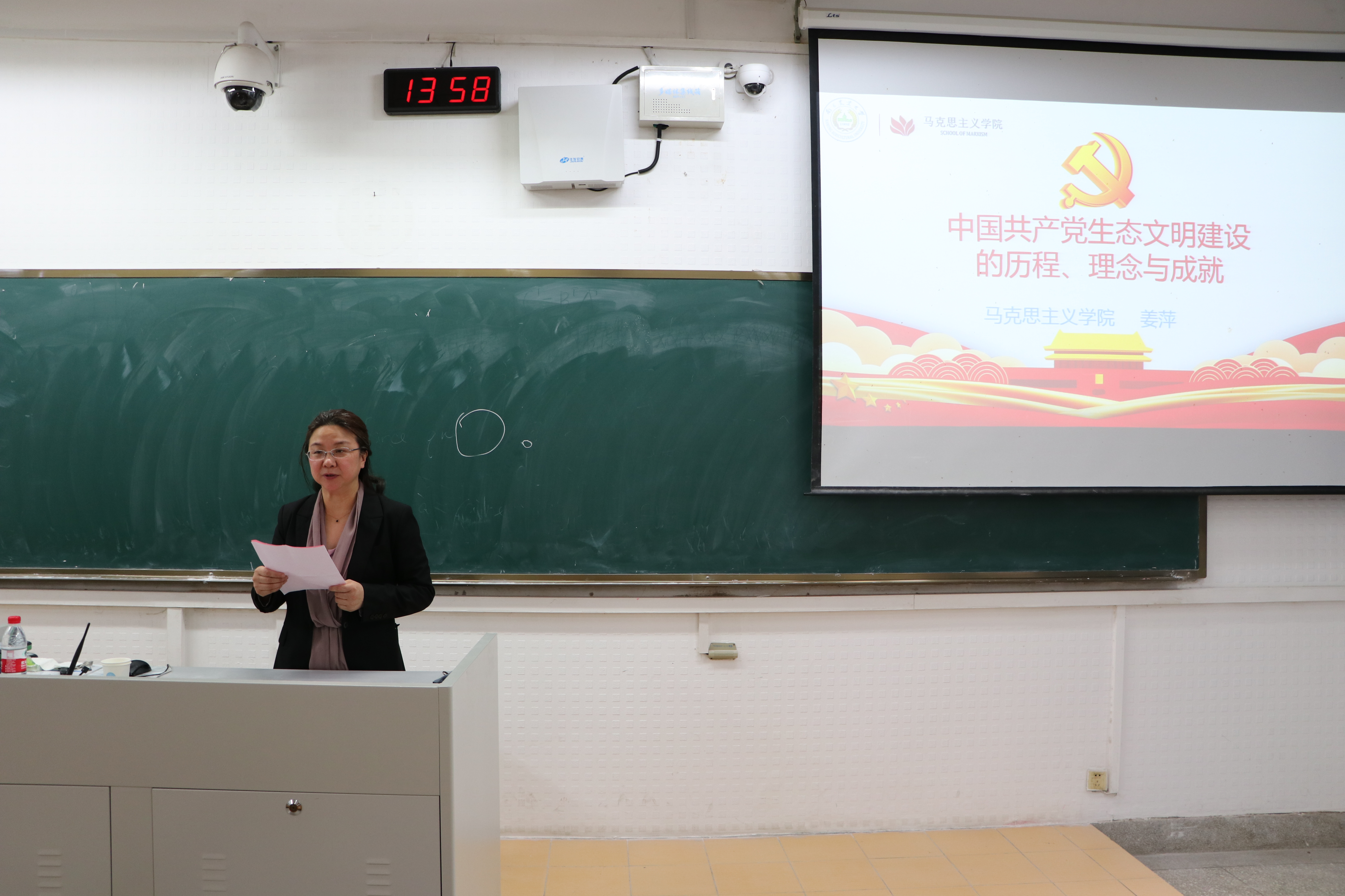 2021年4月21日下午2:00,WilliamHill中文官方网站全体教师在教学楼C103集中学习了《中国共产党生态文明建设的历程、理念与成就》。本次学习由马克思主义学院副院长姜萍教授主讲,党委书记姜岩主持,WilliamHill中文官方网站全体教师参加了本次学习。
