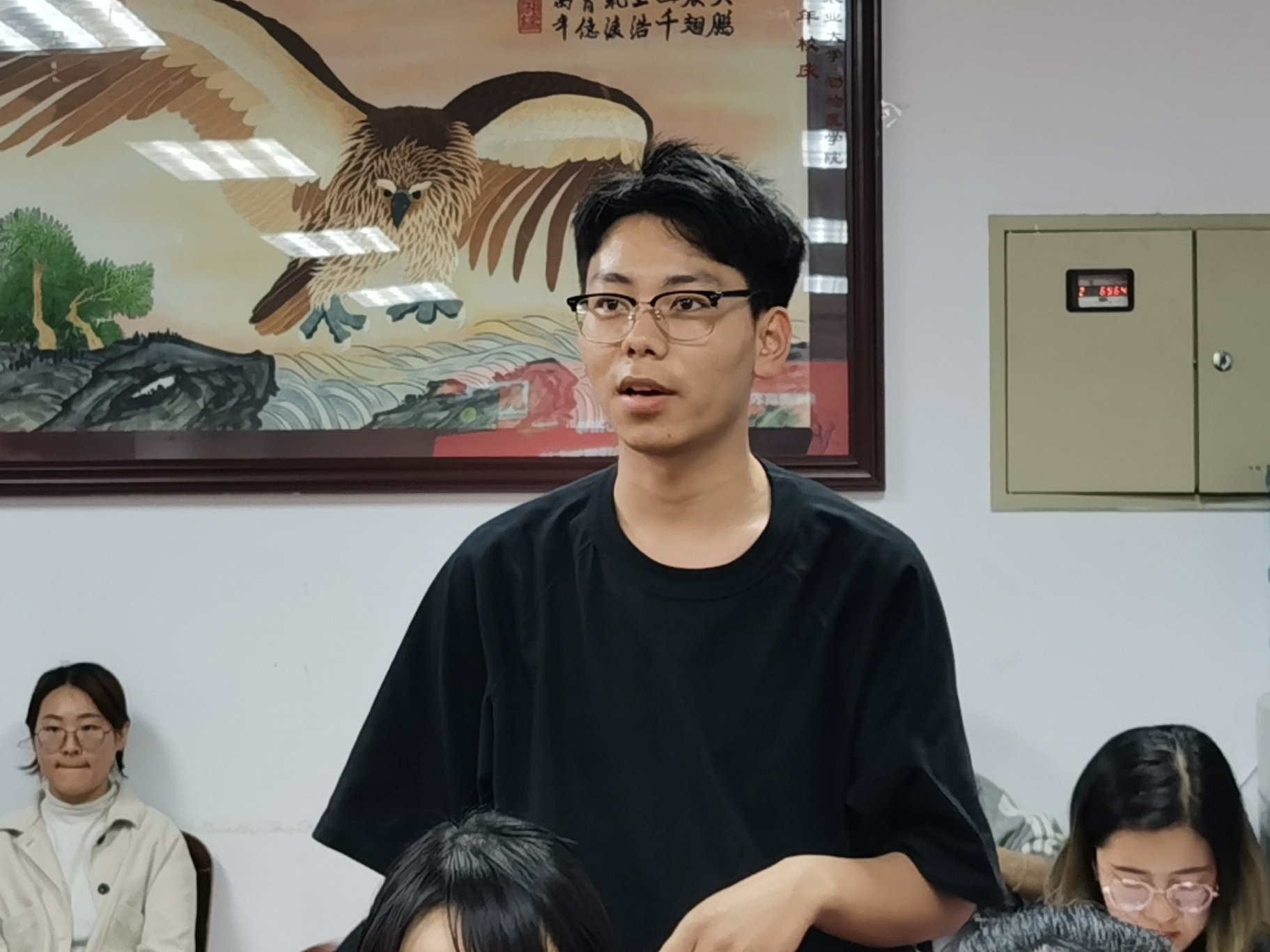 接下来是人文与社会发展学院2019级科学技术史郭云奇博士上台与大家进行分享。郭云奇博士的分享主题是“历史的传承:思想、实事与新局”,以党史为背景讲述和传递“科学精神”,并从专业出发剖析中兽医的发展史,最后从历史延伸到现在,介绍结合“科学精神”和“人文关怀”的新局面。