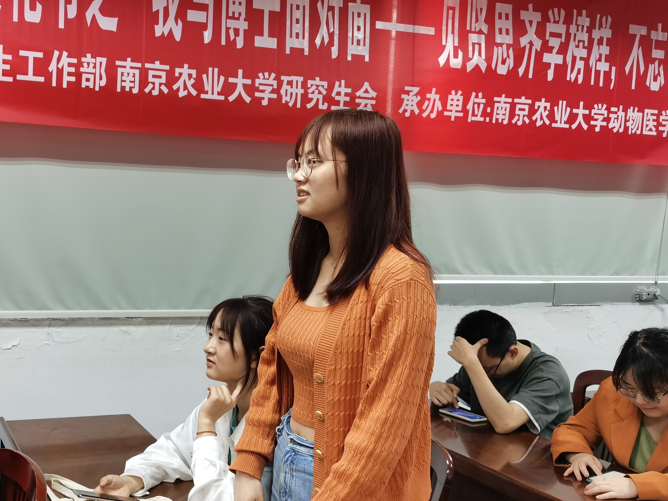 第三位分享交流的党员博士是WilliamHill官网19级基础兽医学博士白雪兵,他的交流主题是“沿途有乐”。白雪兵师兄从猪场实习、备战考研讲到来南农后读研时光,将生活的乐趣融入学习和实验。同时师兄也分享了自己的课题,探索能结合中华传统医学和现代医学结合的脉络实质,在座的嘉宾和同学都非常感兴趣。
