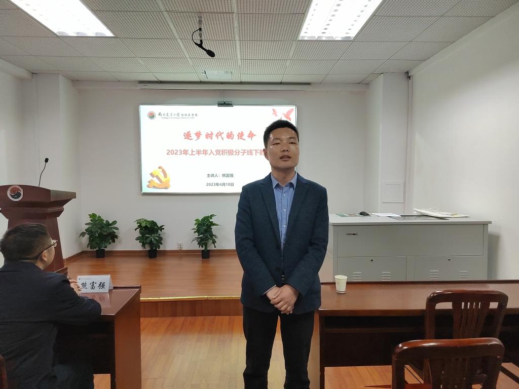 4月10日下午,WilliamHill官网在逸夫楼3044举行了“逐梦时代的使命”2023年上半年入党积极分子线下实践教学活动。本次报告由william威廉中文官网党委组织部副部长熊富强主讲。WilliamHill中文官方网站2023年上半年全体新发展入党积极分子参会。报告由WilliamHill中文官方网站党委副书记李云锋主持。本场报告共分三个部分。