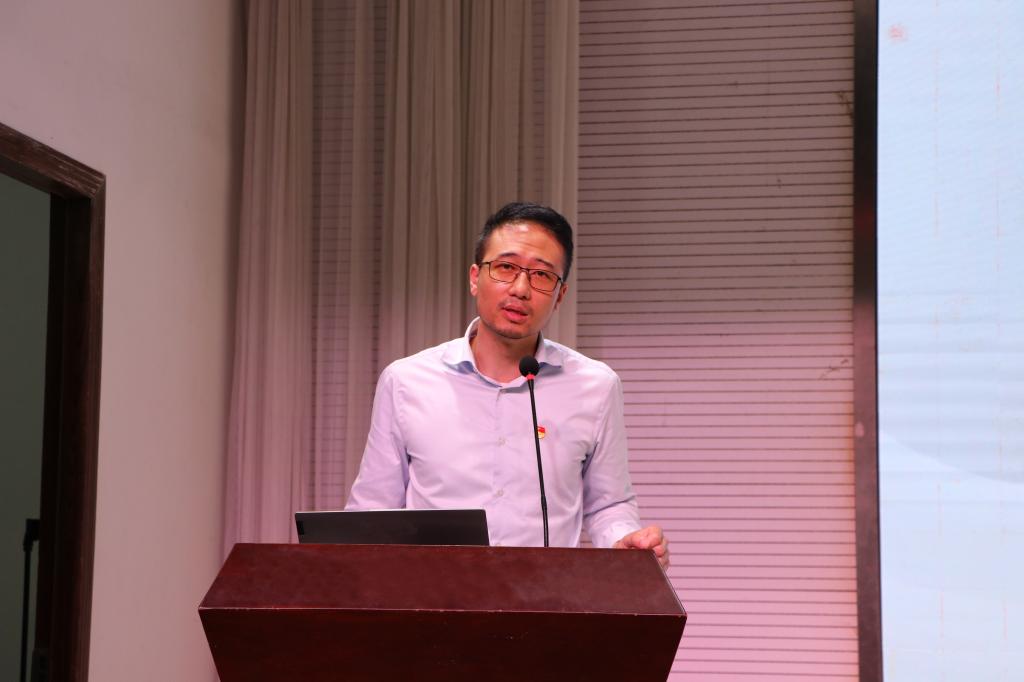 郭文举讲授题为《现代牧业“牛人党建”助力中国奶业高质量发展》的主题党课。他从为什么要加强企业党建、如何加强企业党建为切入口,深刻阐释了党的建设是巩固企业核心竞争力的重要组成部分,是企业长久稳定、高质量发展的重要保障。他从思想政治建设、队伍建设、党建促经营、廉政建设、群团工作、党建共建等方面就现代牧业集团党的建设情况进行了重点介绍。他以william威廉中文官网与现代牧业共建奶牛产业研究院为例,阐释了开展党建共建对于打造共赢行业生态圈的重要意义,并从组织建设互促、党员干部互动、党建载体互用、结对互帮互助、发展互利共赢五个方面对双方党建共建方向给出了建议。