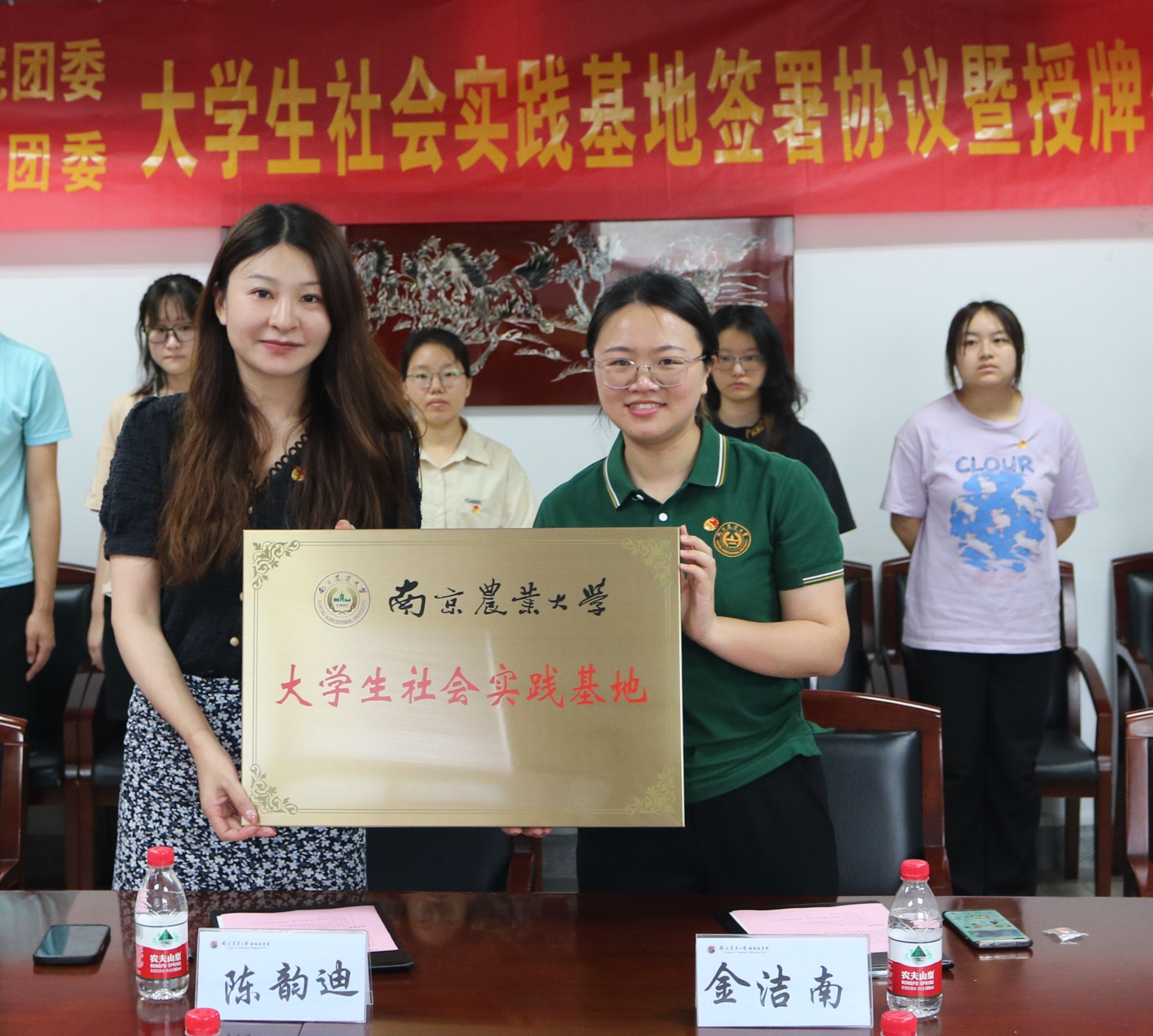 金洁南、陈韵迪分别代表双方签订了大学生社会实践基地共建协议,并进行了授牌。陈韵迪对志愿者工作给予了肯定,并表示南京市中西医结合医院与william威廉中文官网在地理位置、合作基础、人员配备等方面均具有一定的优势,希望下一阶段双方合作能够更深入、更成体系。