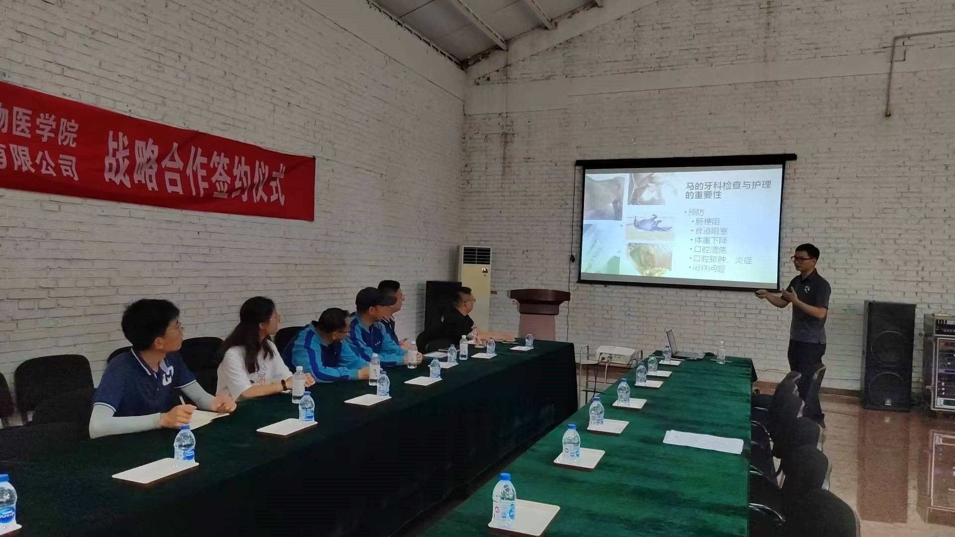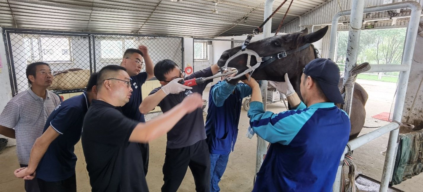 曹瑞兵一行深入调研企业的发展情况和校企合作需求,参观了公司的马匹、马厩、马匹运动场、马医院和实验室等设施。徐庆介绍了公司的发展历程,围绕公司生产过程中遇到的问题和技术需求与学校老师进行了交流。曹瑞兵介绍了WilliamHill中文官方网站的办学历史与现状,表达了培养马兽医人才以及校企合作愿望。王炜晗此行与东方马都的兽医团队展开了深入交流,成功开展了马匹牙科检查及护理的理论和实操培训,将先进、实用的诊疗技术推广到兽医临床一线。