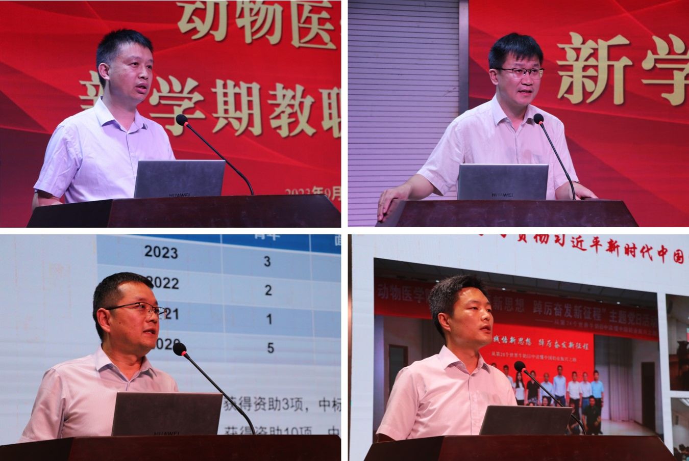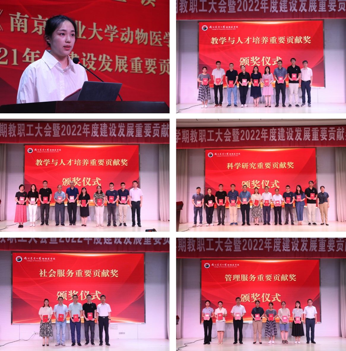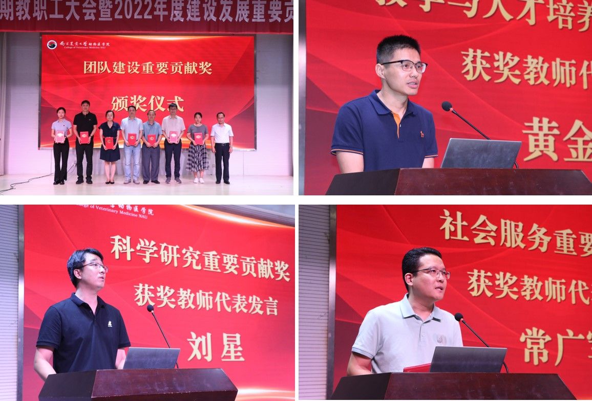 在第二阶段会议中,汪明佳宣读了学院关于表彰2021年度和2022年度建设发展重要贡献奖的决定,共表彰2021年度获奖个人36人次,团队5个;2022年度获奖个人43人次,团队7个。其中,2022年度获奖团队及个人分6个批次上台领奖,学院领导为获奖老师现场颁发了表彰证书,黄金虎、刘星和常广军作为获奖教师代表发言。