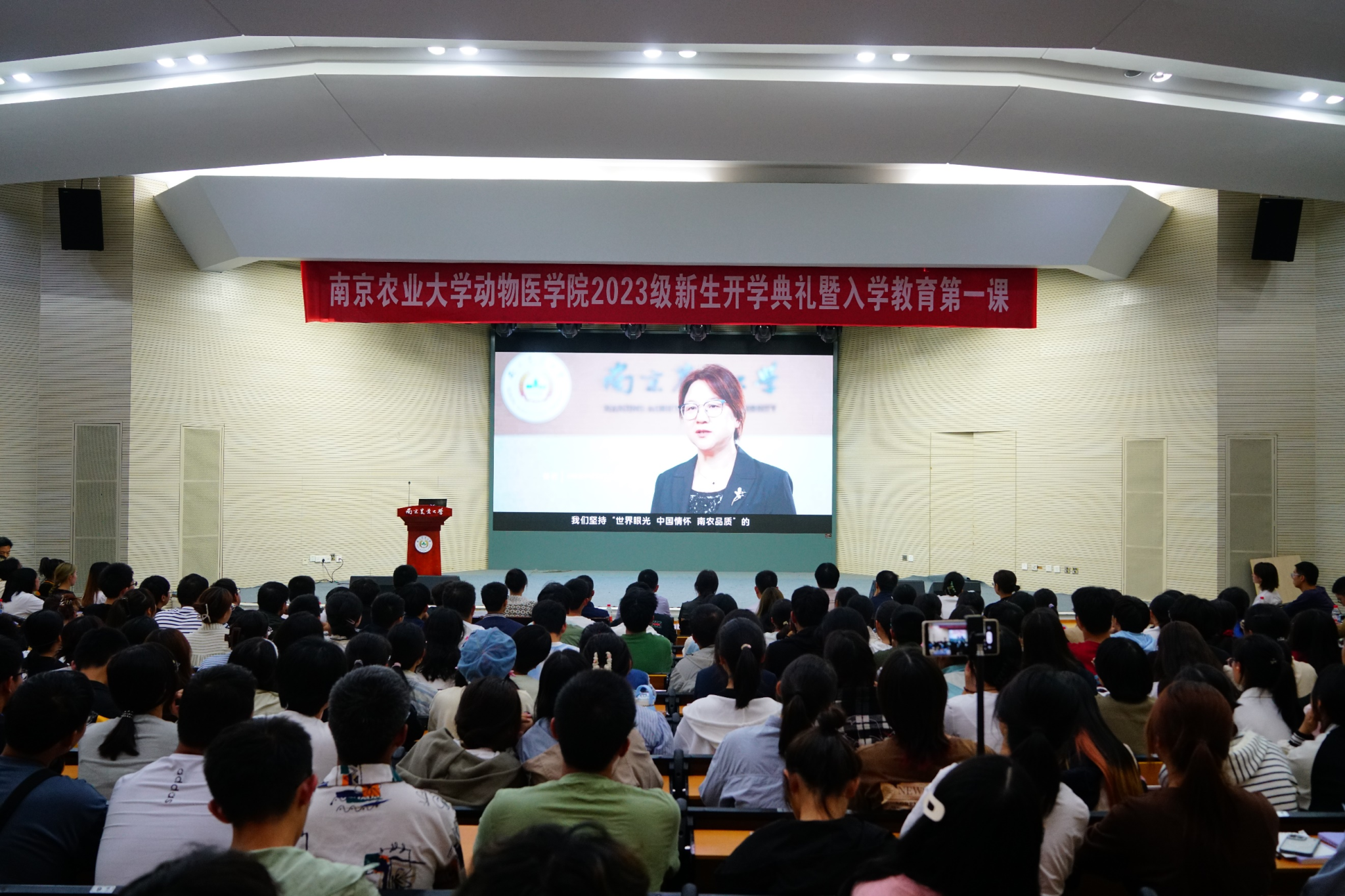 全体新生在领誓人的带领下进行入学宣誓,将“兽医人的职责和使命”铭刻于心。