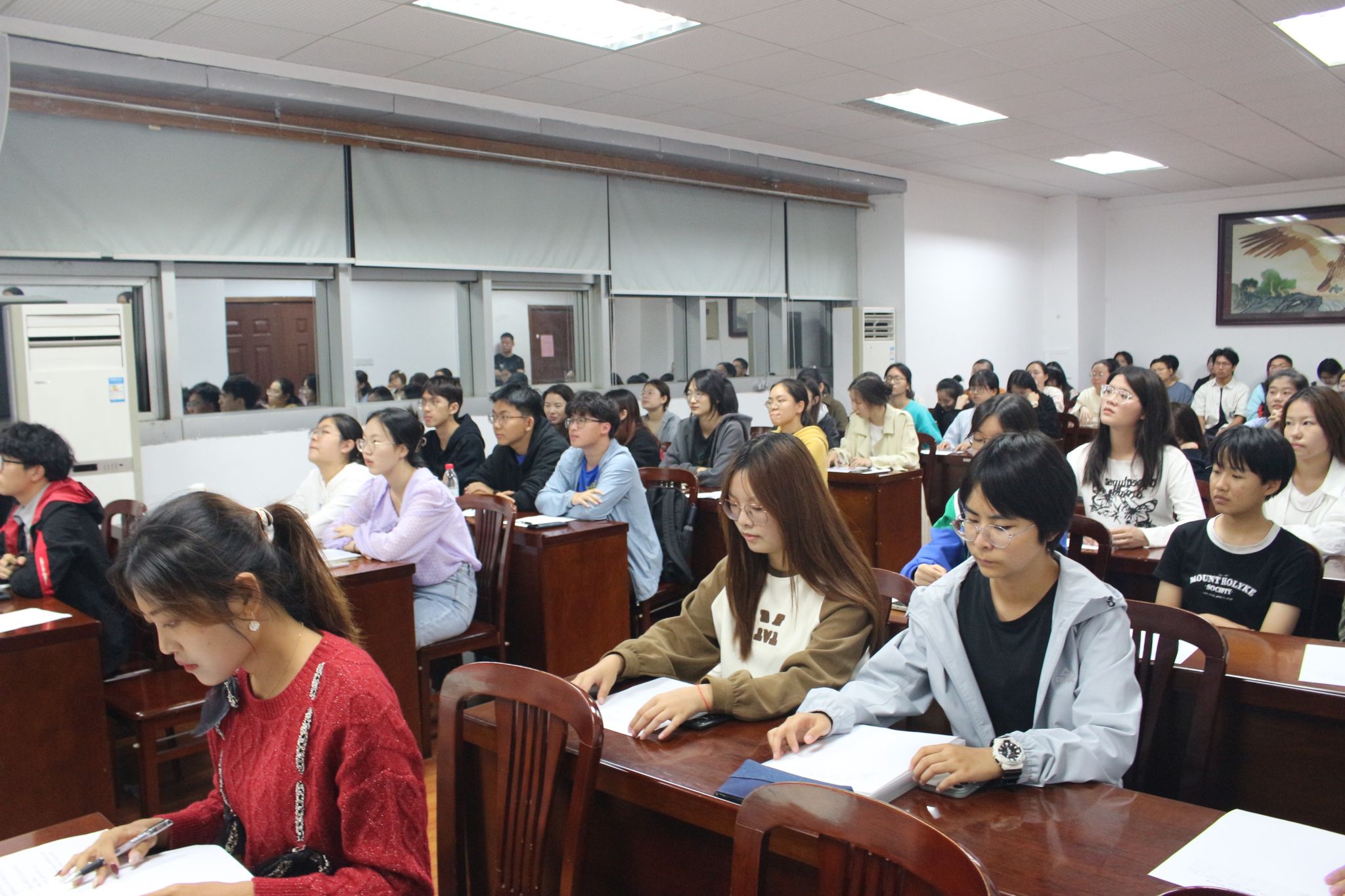 田文秀、金洁南对答辩进行总结并与同学们进行了交流问答。田文秀在与23级寝室长的互动之中引出了对先进宿舍全在女寝这一现状的反思,提出了要增强男生宿舍文化、卫生建设的重视程度。金洁南借以往先进宿舍答辩情况对在场同学们提出倡议,希望23级寝室长做好带头作用,使寝室成员们保持冲劲,维持良好的学习生活习惯,展开精彩的校园生活。