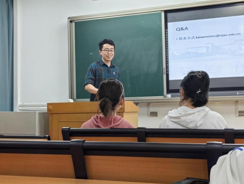 陈凯文以“培养国际化视野”为主题,从求学时所遇到的趣事和风景引入。详细阐释了何为国际化视野,为何要培养国际化视野,如何培养国际化视野以及如何利用南农平台合理地提升自我。研讨课上,他鼓励大家积极学习英语,不断地去探索适合自己的道路,并以视频、现场答疑的形式加深同学们的认识,为大家未来学习的方向提出了合理可靠的建议。