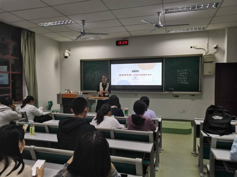 吴蕾开展了主题为“平衡膳食,健康生活”的新生研讨课。课程开始,吴蕾以互动交流破冰,使大家认识彼此,接着以生活中常见的益生菌饮品导入,介绍了肠道微生物及其分类,以及益生菌的功能,并科普了肠道微生物对人体影响之大,让同学们对于肠道微生物有了初步的了解,认识到平衡膳食,合理摄入益生菌对于预防肠道微生物失调的重要性,教会了同学们如何挑选对人体有益的益生菌。通过本次研讨课,同学们收获颇多,加深了对肠道微生物和益生菌的了解。