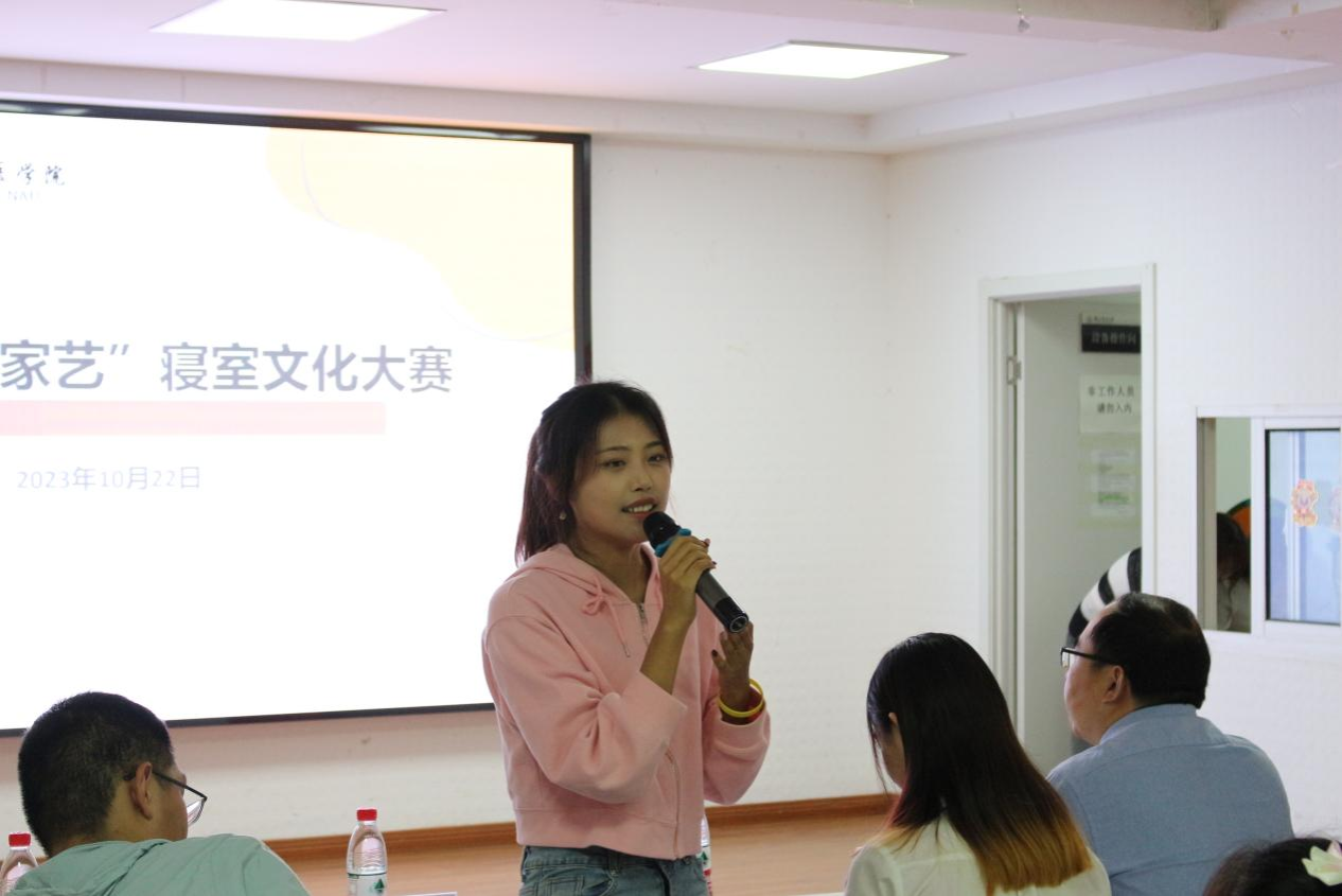马文强从寝室氛围、寝室文化建设、学风建设等方面对各宿舍的表现进行了肯定,并对参赛选手的学习生活提出展望,希望大家在未来能有更好的发展。