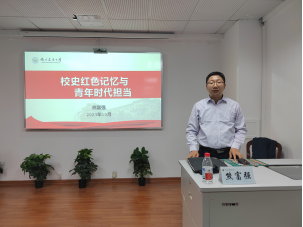 第一部分,熊富强以“校史中的红色记忆”为题,向同学们重点讲述了革命洪流中以及五二零运动中的南农英烈及南农师生,展示了近代历史中的南农力量。南农在每一个历史进程中都为国家输送了一批批有坚定信仰、拥有红色血脉,并为之奋斗终身的南农人!