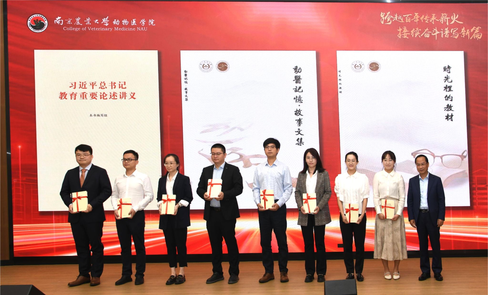 活动现场举行了《薪火相传,接续奋斗》--新老教师互动环节,姜平代表学院资深教授为青年教师“赠书”,他结合自身在南农动医求学、工作经历,勉励学院青年教师要志存高远、自强不息,加强理论创新和实践研究;要踔厉奋进、守正创新,传承和发展兽医文化和学科;要以身作则、为人师表,做好“经师”和“人师”。