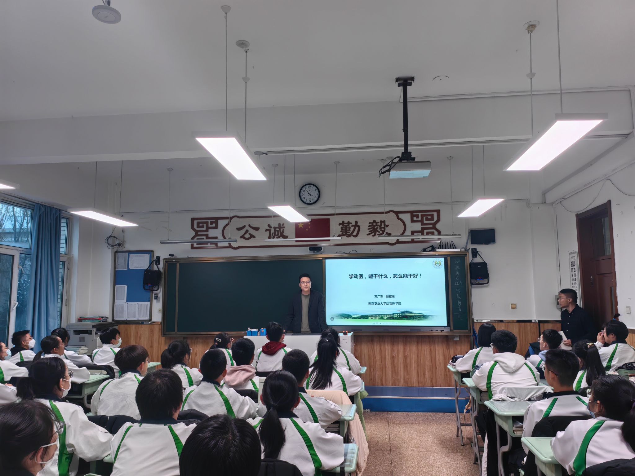 常广军副教授为哈尔滨师范大学附属中学学生开展《学动医,能干什么,怎么能干好》科普讲座,从家庭养宠的实例出发,深入浅出地介绍了常见的几类人畜共患病,并勉励同学们在未来专业选择和学习中,要志存高远,将个人理想与行业发展和国家需求相结合,现场互动频繁,气氛热烈。