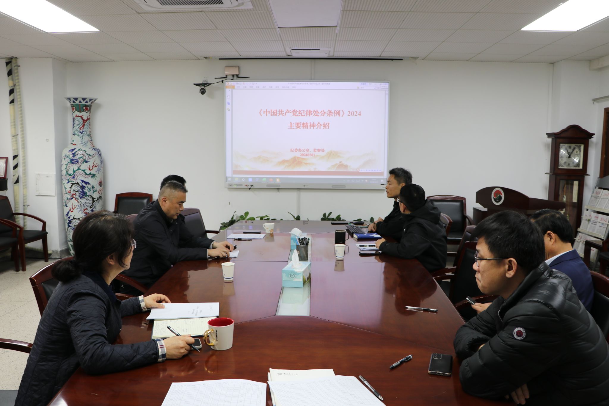 学院党委副书记李云锋领学《中国共产党纪律处分条例》和《2024年中央一号文件》,并就与高校、教师等相关内容进行解读。