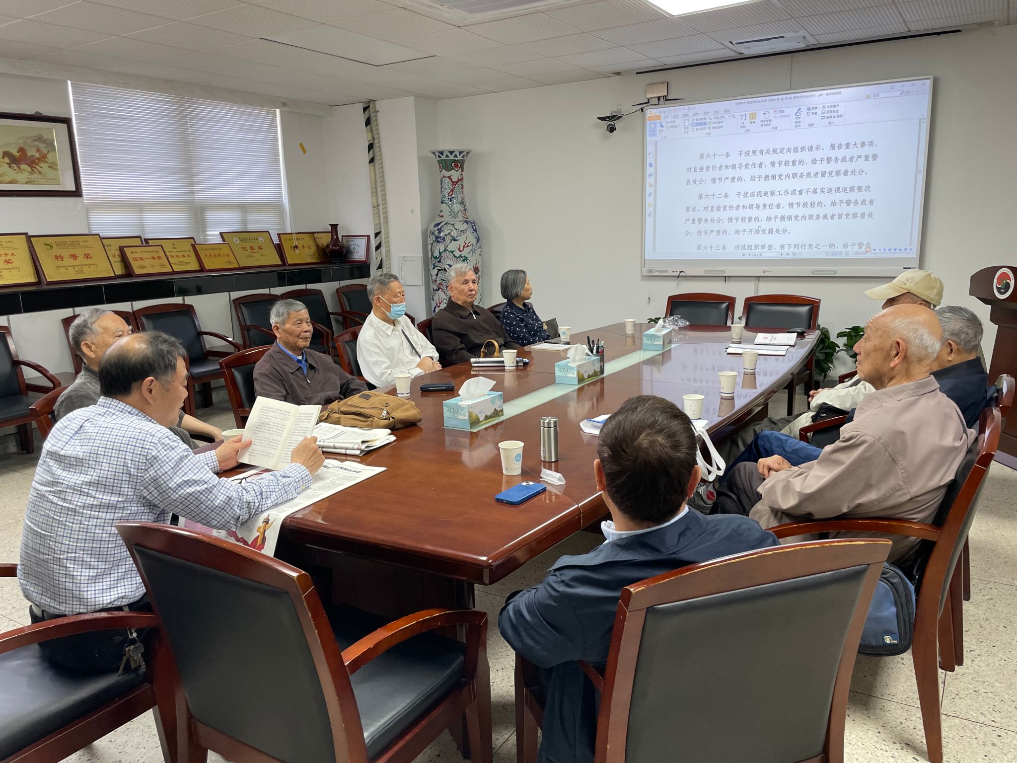 5月16日,退休教工党支部在逸夫楼3036会议室开展党纪学习教育主题活动。支部书记雷治海以身作则,带领支部成员,原原本本学、逐字逐句学、对照联系学,围绕《中国共产党纪律处分条例》进行深入研讨。
