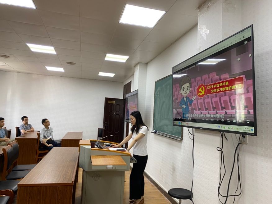 5月16日,本科生第一党支部在逸夫楼3044开展“明党纪 强信念 守党纪 走新路”党纪学习教育主题活动。党支部书记田文秀从修订背景、主要内容、亮点解读三个方面,带领支部党员集中学习《中国共产党纪律处分条例》。