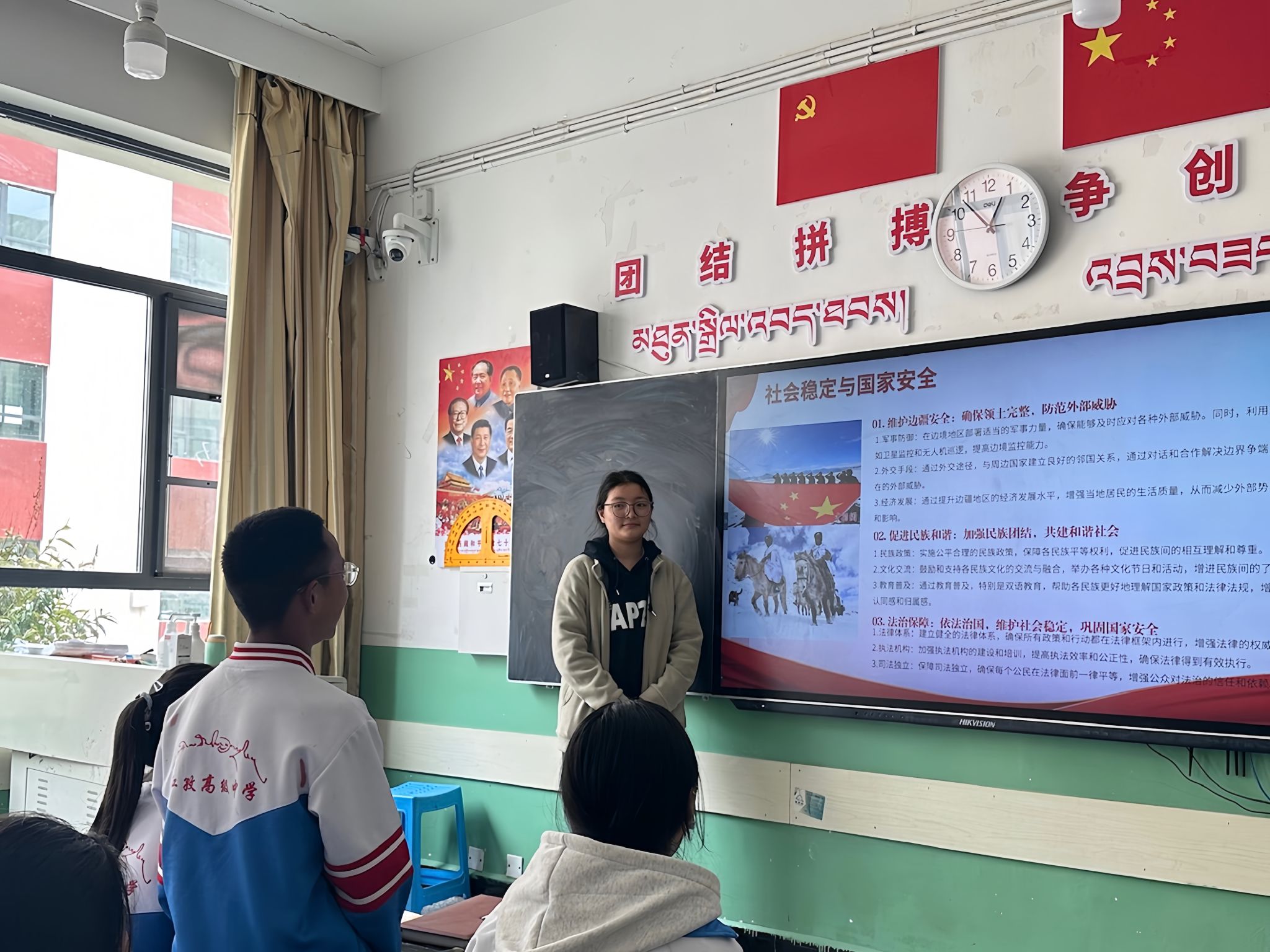 在互动环节,团队成员们鼓励学生们积极提问并交流讨论个人看法。学生们踊跃发言,表达了对西藏红色文化的认同和对未来的美好憧憬。团队成员们耐心解答了 学生们的疑问,并鼓励他们继承和发扬红色基因,为建设更加繁荣富强的西藏贡献自己的力量。