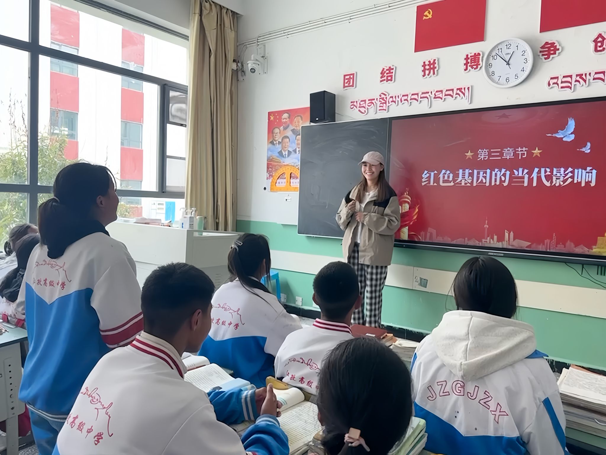 6 月 12 日 ,团队成员们带着对西藏红色文化的敬意,走进了日喀则市江孜县高中。在与学校和老师的沟通后,成员们为高一(4)班的学生们带来了一场主题为“西藏红色基因传承之路,与未来愿景”的宣讲。宣讲中,团队成员们通过生动的历史故事和深入浅出的讲解, 激发了学生们对西藏红色文化的兴趣和自豪感。