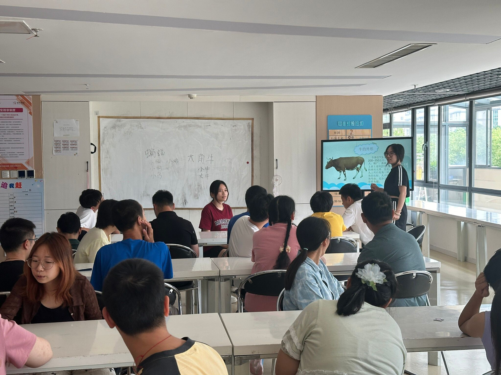 生动有趣的观影活动活跃了课堂的氛围,同时也引出了这次科普活动的主题——牛。志愿者们利用PPT与动物模型结合的方式,向学员们讲解了牛的身体结构、生活习性以及与人类生产活动的关系。从它们的饮食、消化习性到在农业生产中的重要作用,志愿者们用通俗易懂的语言和形象的演示,将复杂的科学知识变得生动有趣,让学员们在轻松愉快的氛围中收获了知识。