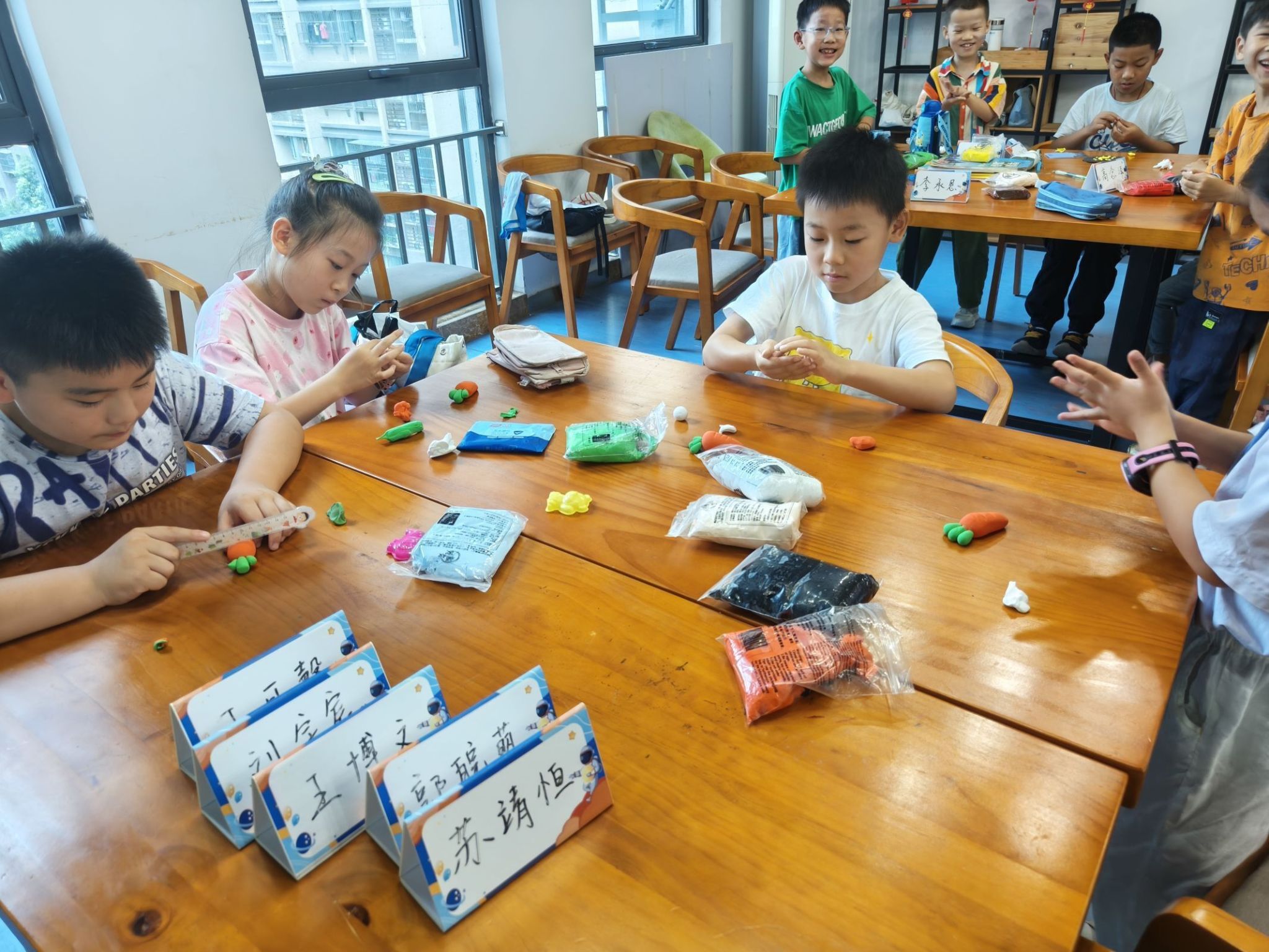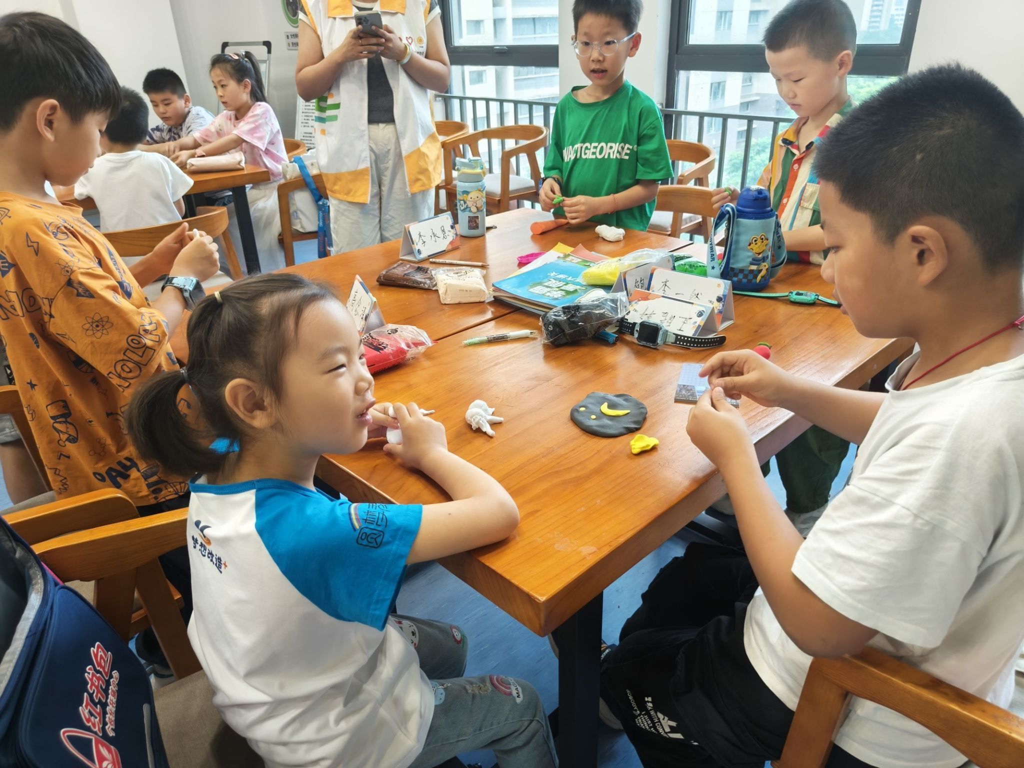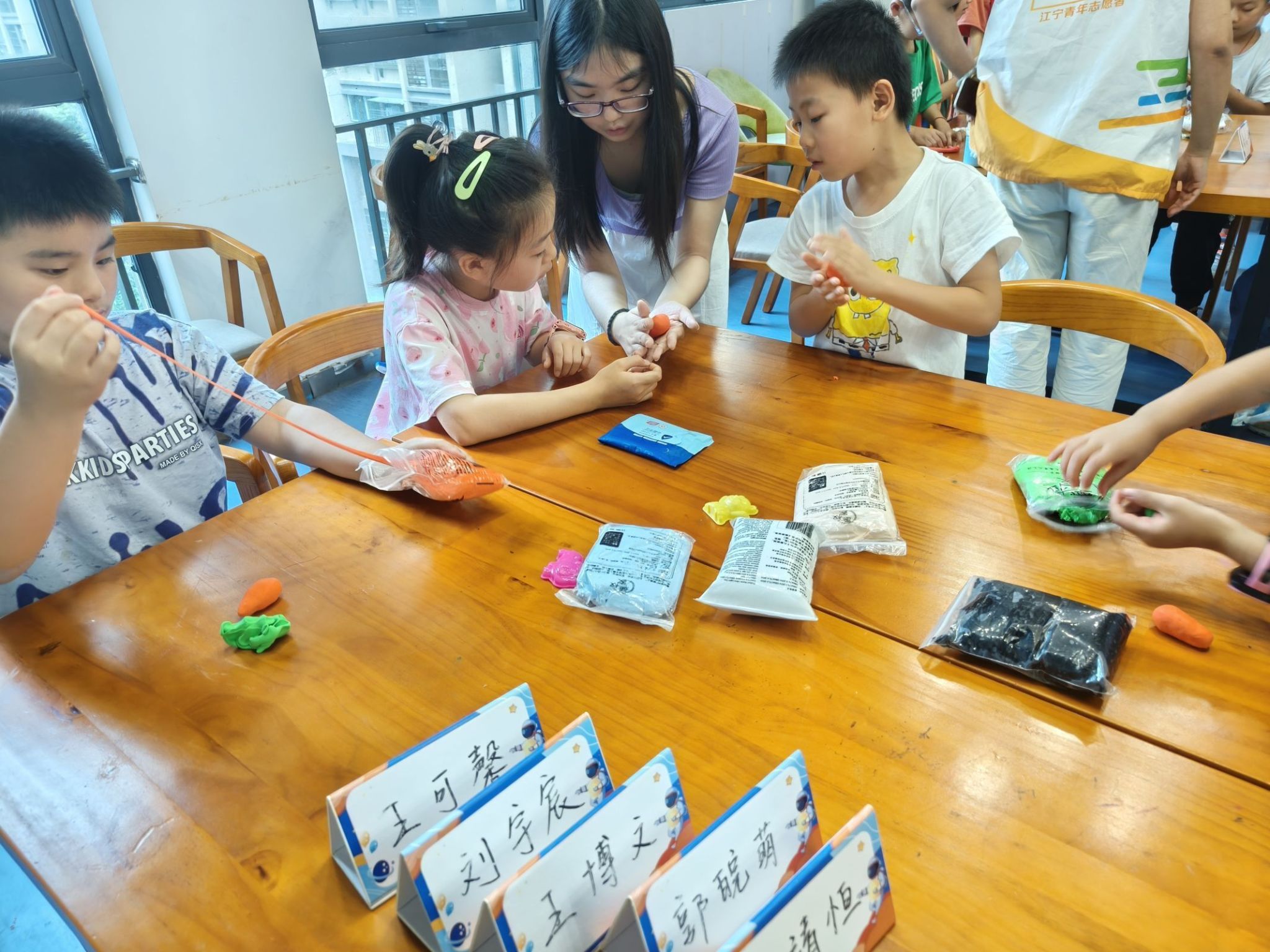 互动环节里,志愿者们引领着学员们开展了一场别开生面的手工活动。在志愿者的悉心指导下,小朋友们用五彩斑斓的黏土,巧手捏制出一只只憨态可掬的小兔子,不仅锻炼了动手能力,还激发了孩子们的创造力和想象力,现场洋溢着欢乐与温馨的氛围。
